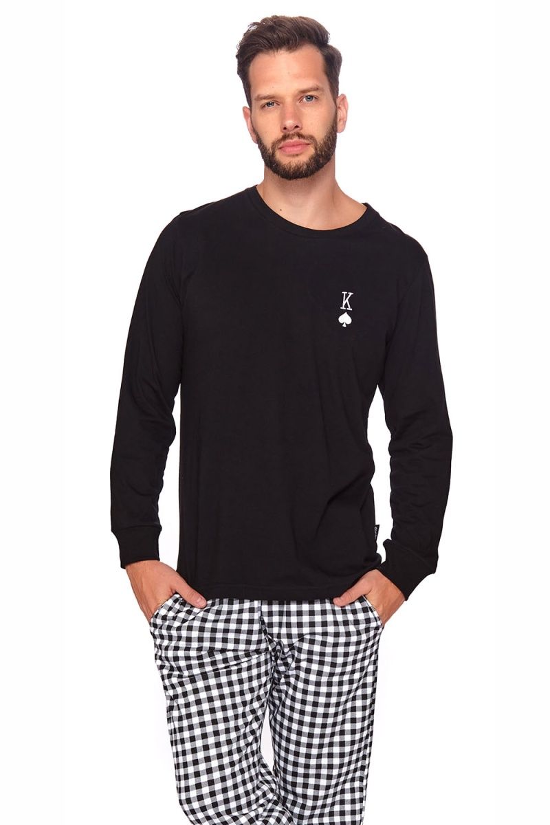 Размер — XXL. Цвет — черный с белым. Материал — 100% хлопок. Пижама подходит для сна, отдыха дома и уютных выходных. Ткань сохраняет форму и аккуратный внешний вид при правильном уходе, а выразительный карточный принт добавляет образу индивидуальности.