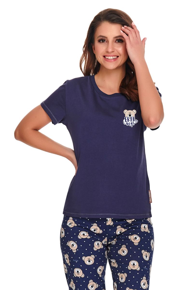 Пижама выполнена в насыщенном темно-синем цвете, который отлично сочетается с контрастным светлым принтом. Такой вариант универсален и практичен. Комплект изготовлен в Польше с вниманием к качеству пошива и деталям. Он легко переносит многократные стирки, сохраняя форму и цвет.