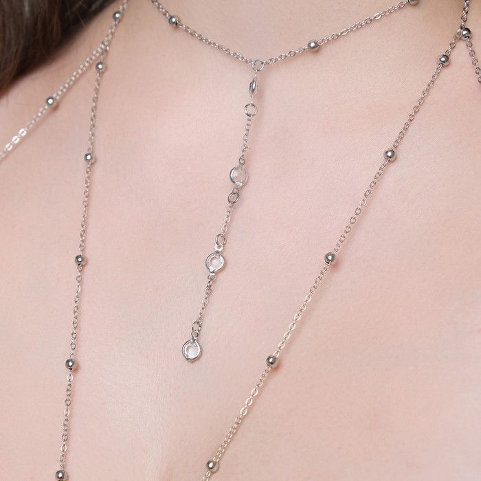 Выбирая эту подвеску, вы получаете не только стильный аксессуар, но и возможность выделиться из толпы. Металлические бусинки, чередующиеся со стразами, создают эффектный блеск, который привлекает взгляды. Асимметричный дизайн и многослойность делают украшение универсальным, подходящим как для вечернего, так и для повседневного образа.