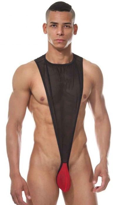 Мужское боди с контрастным гульфиком, L-XL, черный/красный, 85% полиэстер