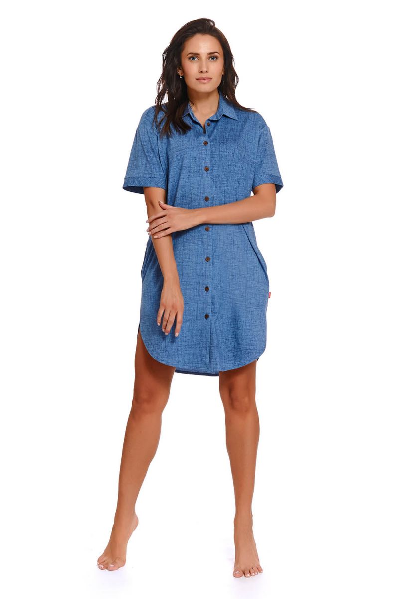 Платье-рубашка представлено в насыщенном синем цвете, который подходит для любого времени года. Размер M обеспечивает свободную посадку. На спинке расположена аккуратная нашивка с названием бренда. Изделие произведено в Польше с соблюдением европейских стандартов качества.