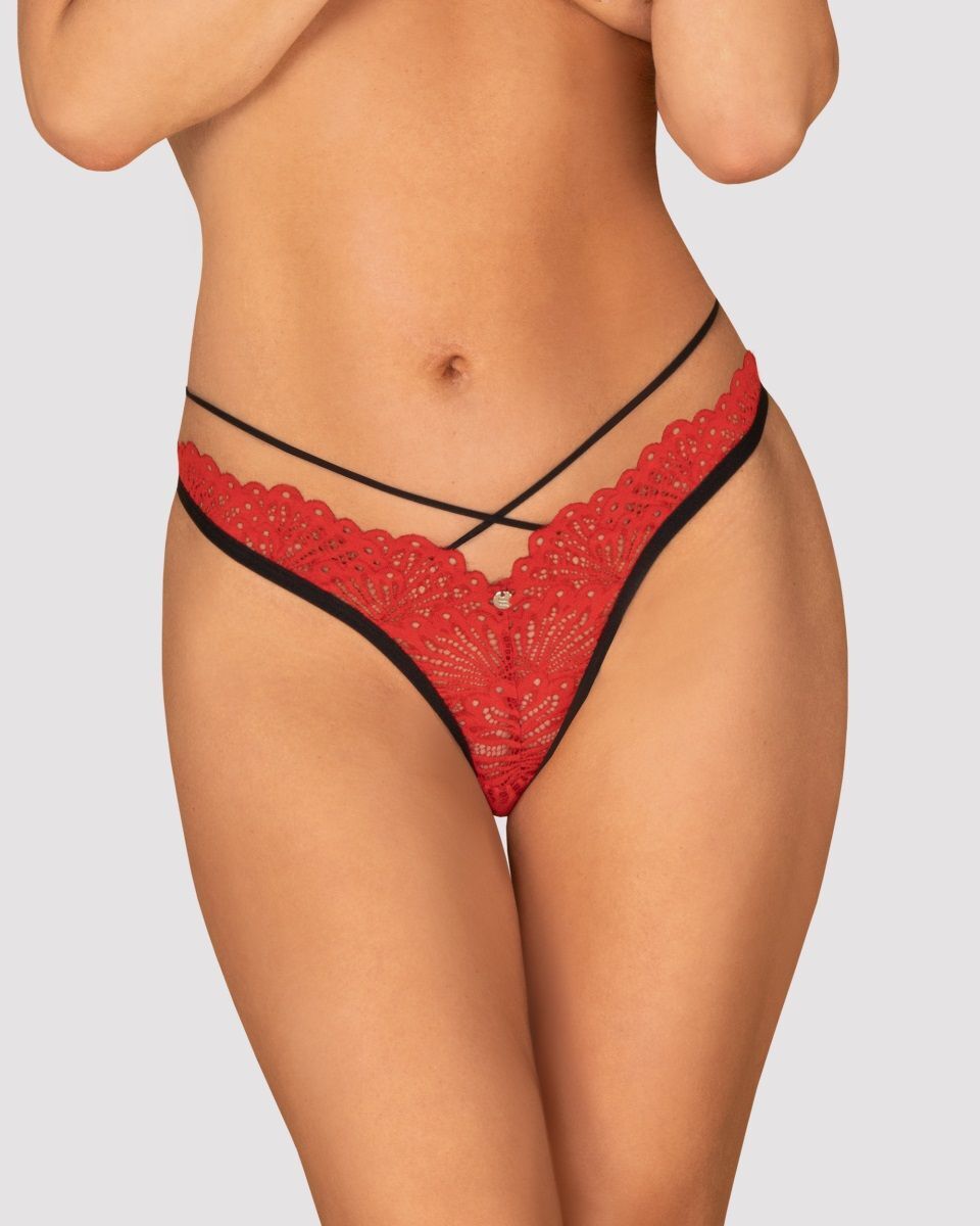 Трусики-стринги кружевные 'Mettia', эротичные, комфортные, размер L-XL, красные с черным, полиамид/эластан