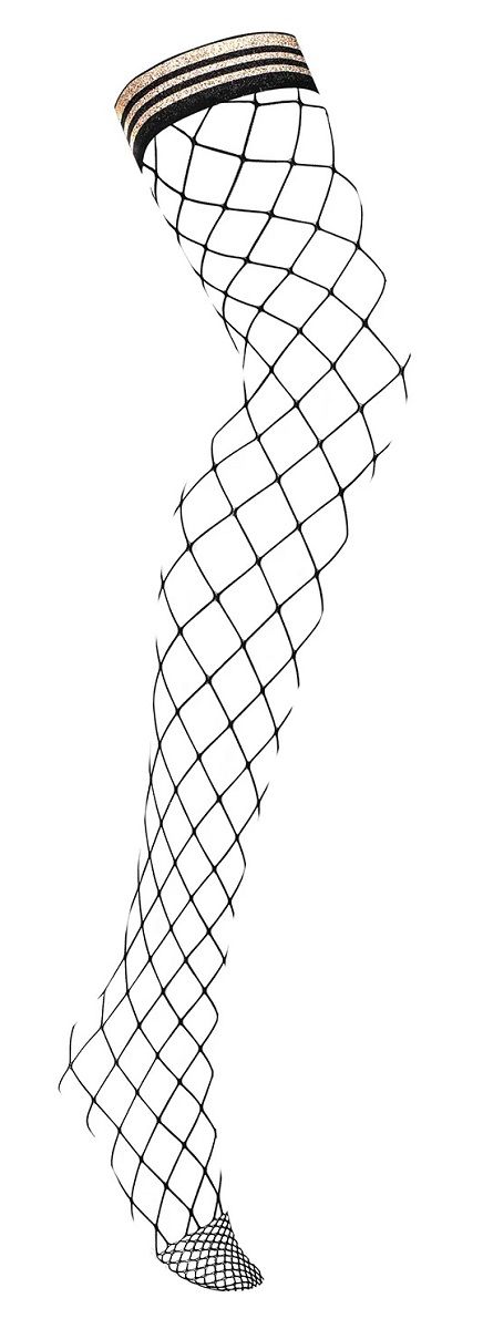Эти оригинальные чулочки с крупной ромбовидной сеткой созданы для тех, кто ценит дерзкий и притягательный стиль. Широкая резинка с двумя блестящими золотистыми полосами не только надежно фиксирует чулки на бедре, но и становится яркой деталью, привлекающей внимание. Модель предназначена для ношения без пояса, что обеспечивает максимальный комфорт и свободу движений.