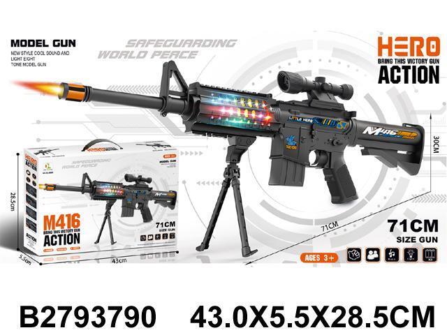 Игрушечный автомат с реалистичными эффектами, 71 см, свет/звук, пластик, подставка в комплекте