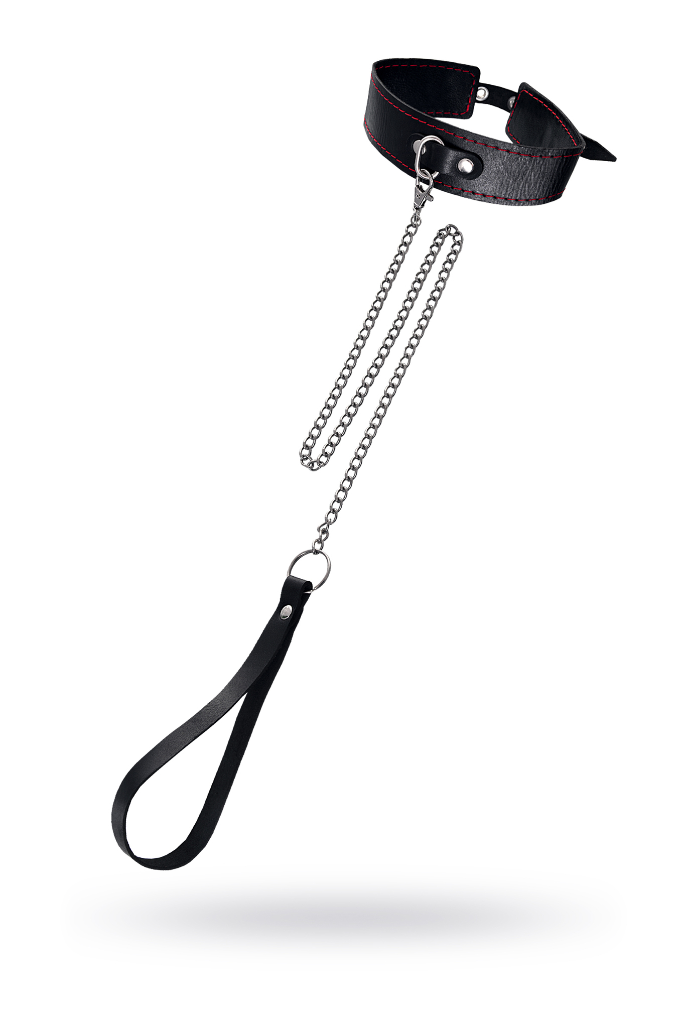 Двухслойный кожаный ошейник с металлической цепью — идеальное сочетание эстетики и функциональности для взрослых игр. Красная контрастная строчка добавляет дерзкий штрих, превращая аксессуар в стильный чокер для смелых образов.