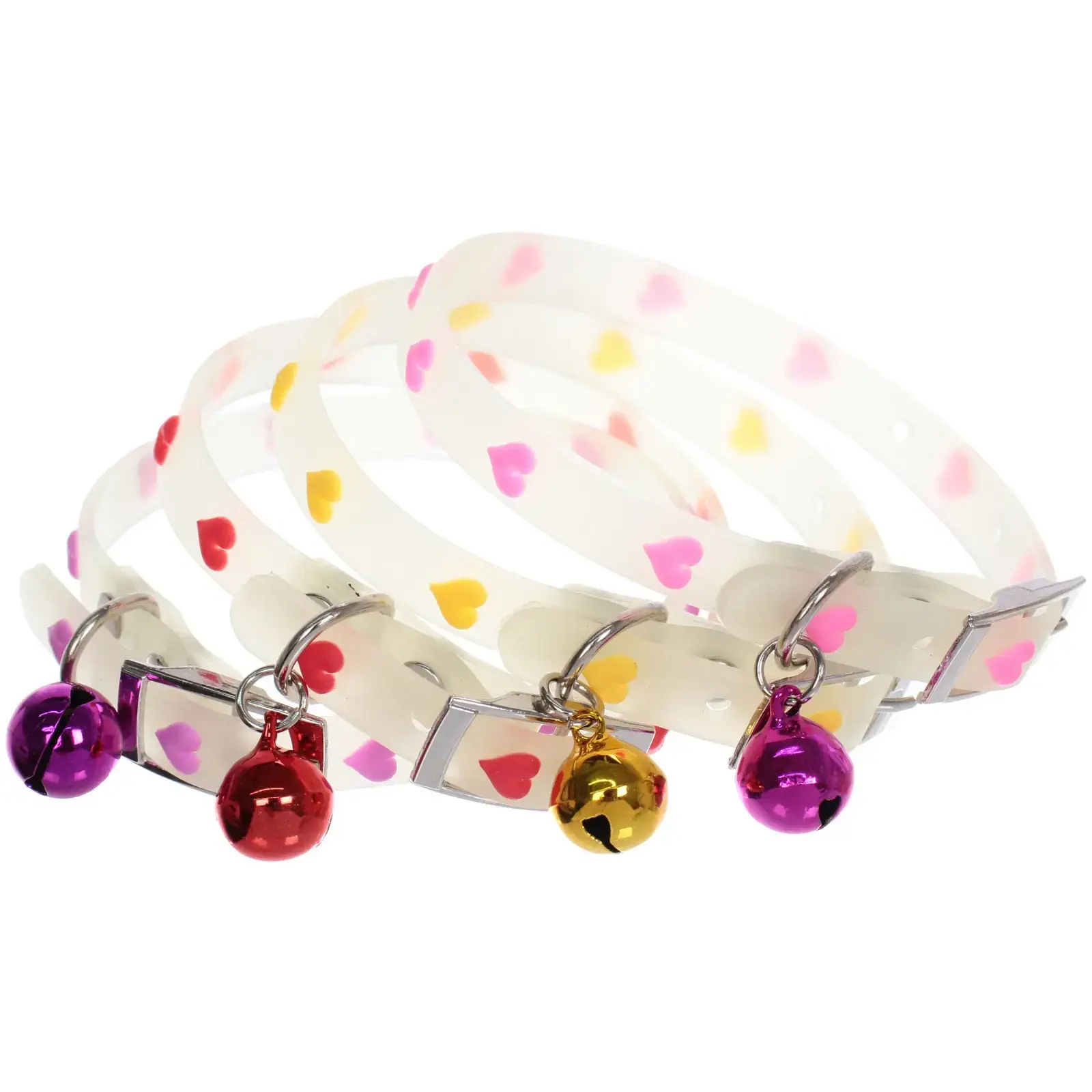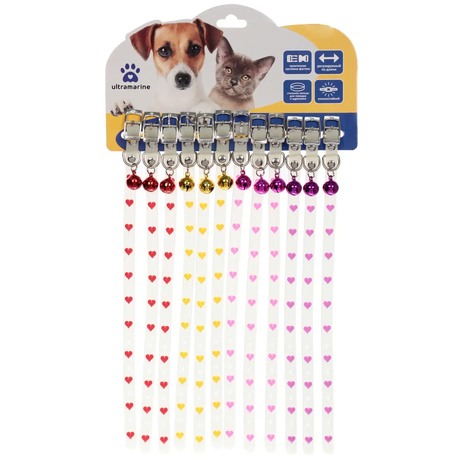 Размер ошейника составляет 30 см, что делает его подходящим для большинства домашних животных. Он украшен маленькими сердечками различных цветов, что добавляет игривости и стиля. Металлическая застежка и колокольчик обеспечивают дополнительный комфорт и безопасность, позволяя вам всегда знать, где находится ваш питомец.