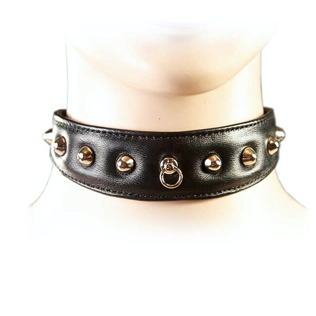 Ошейник выполнен из натуральной кожи, что гарантирует его прочность и комфорт при ношении. Металлические элементы добавляют стильный акцент и делают изделие более выразительным. Этот аксессуар станет отличным выбором для тех, кто ценит качество и стиль.