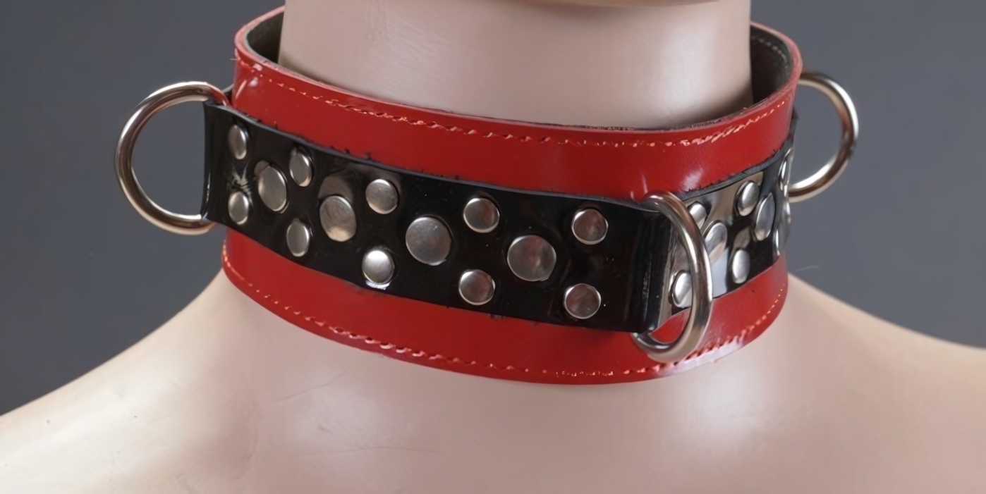 Изготовленный из натуральной кожи, лака и металла, ошейник отличается прочностью и эстетикой. Красный цвет с черными вставками делает его ярким и запоминающимся. Он идеально подходит для использования в различных ситуациях, включая вечеринки и тематические мероприятия.