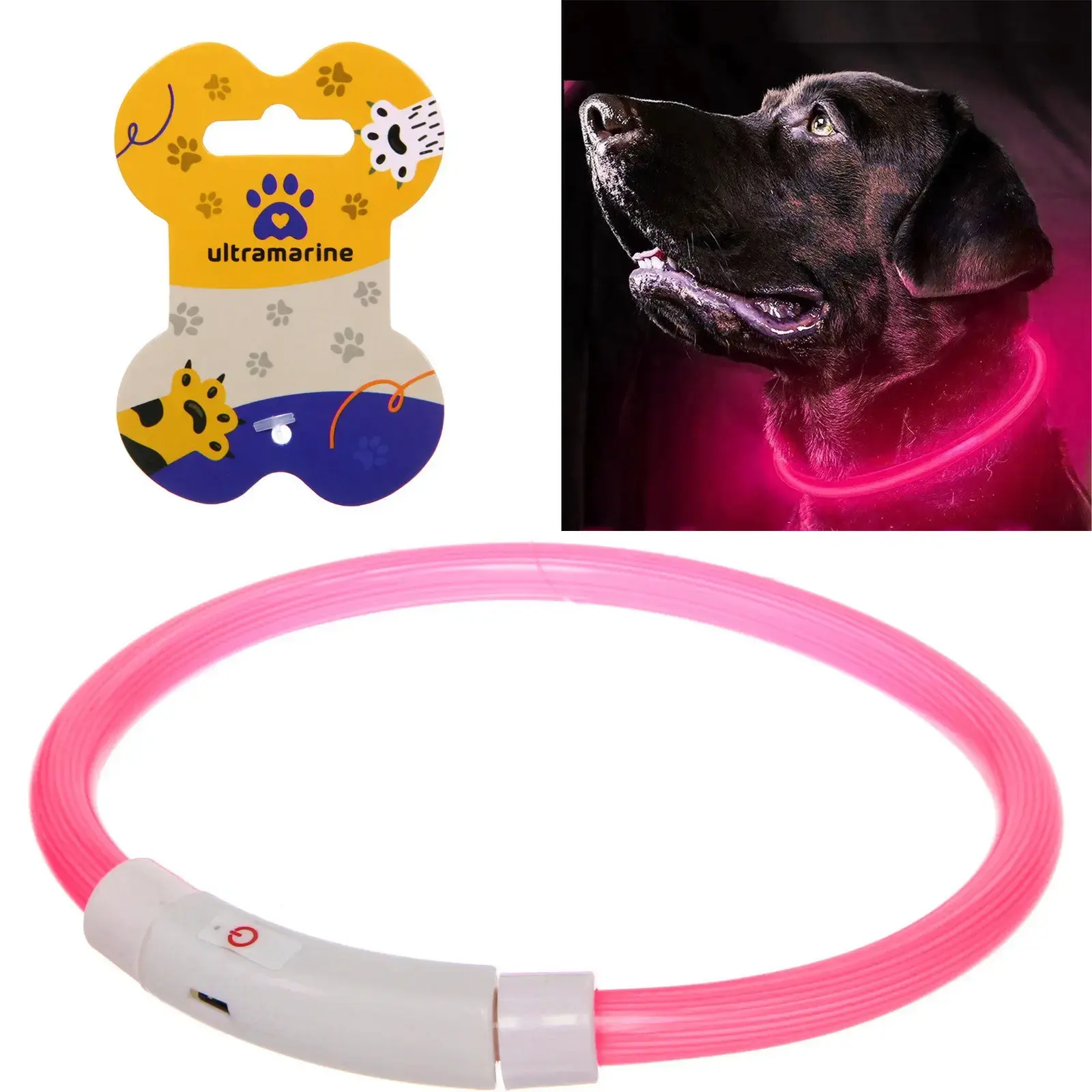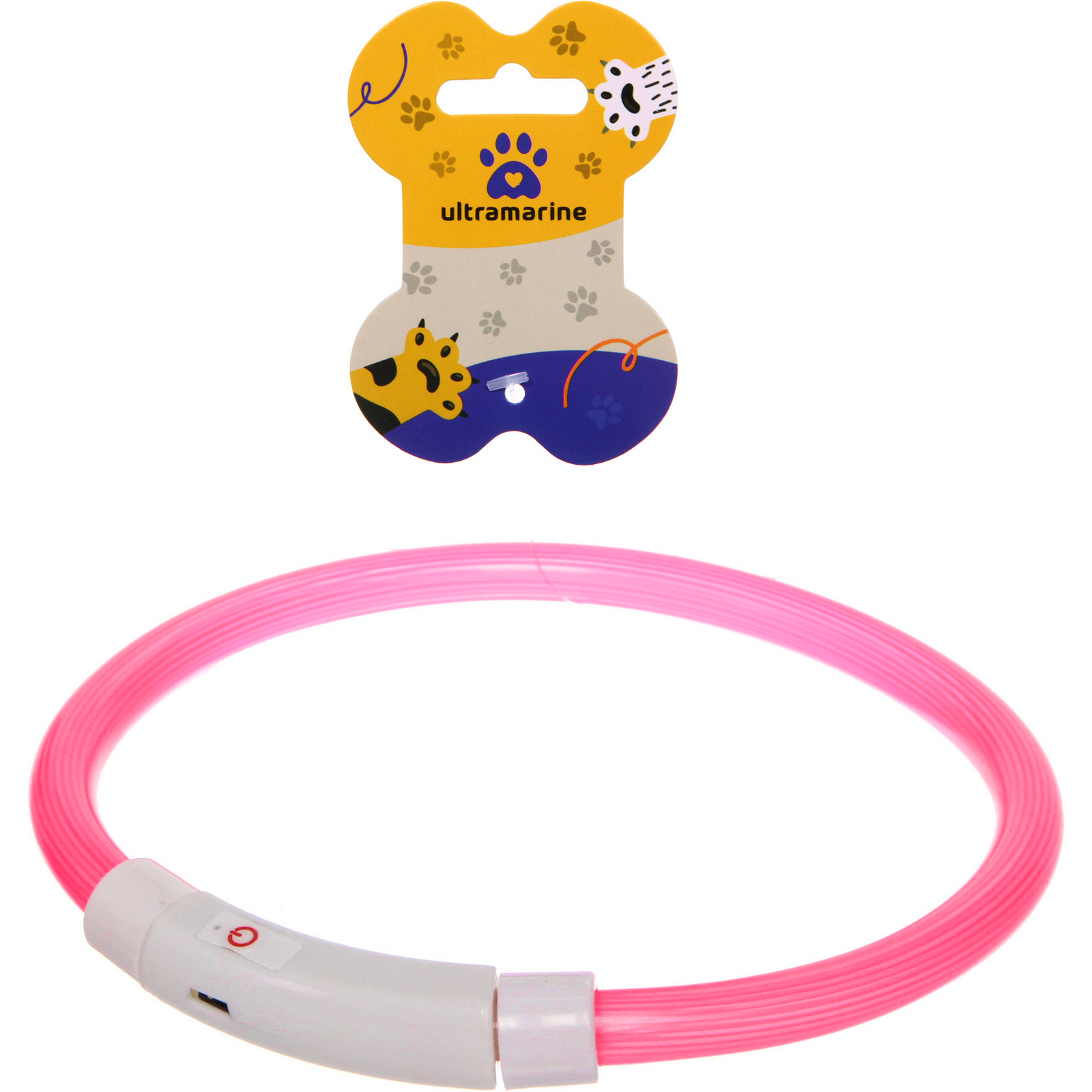 Ошейник светящийся «Защита Бро» для собак, розовый, USB-зарядка, водостойкий пластик, размер M (50 см)
