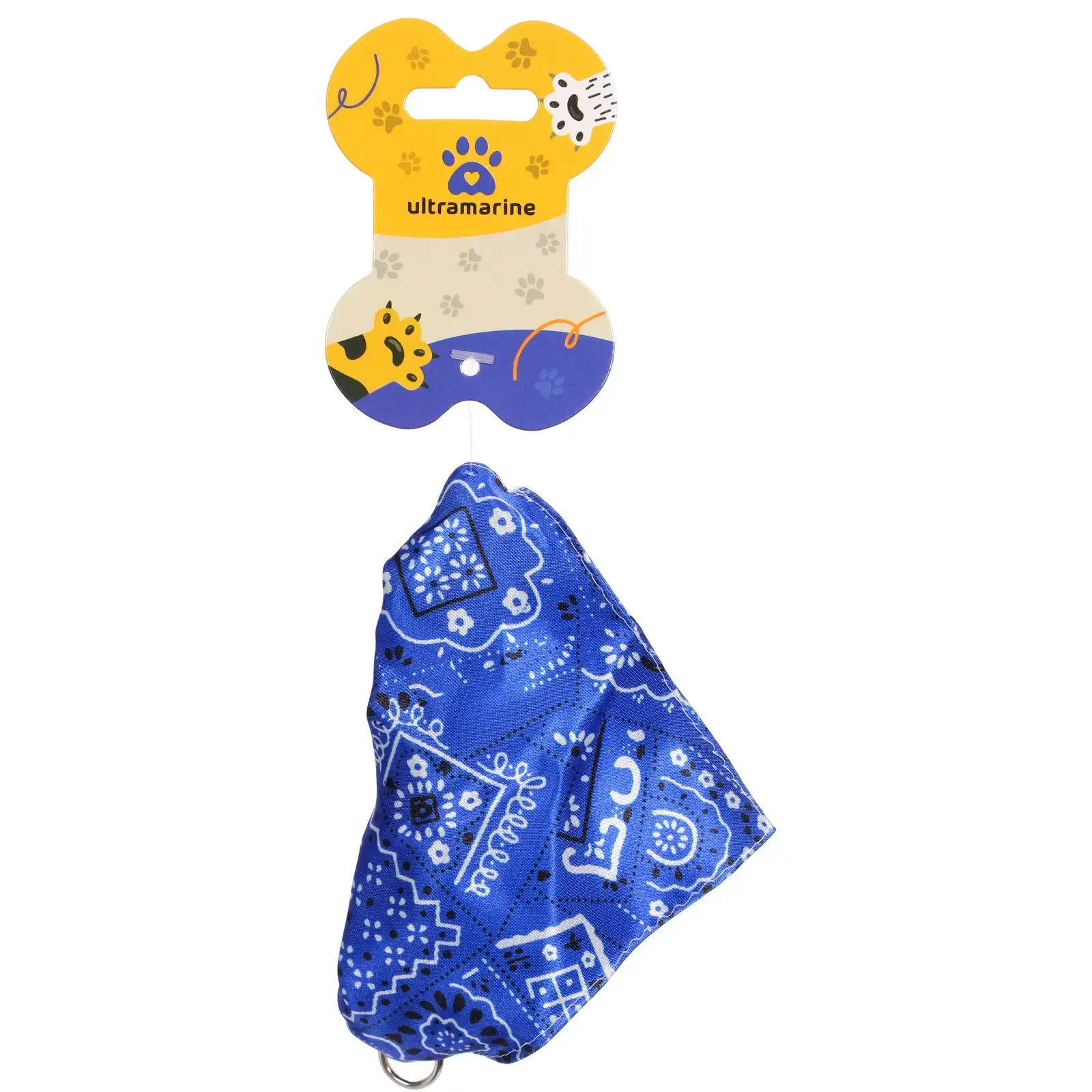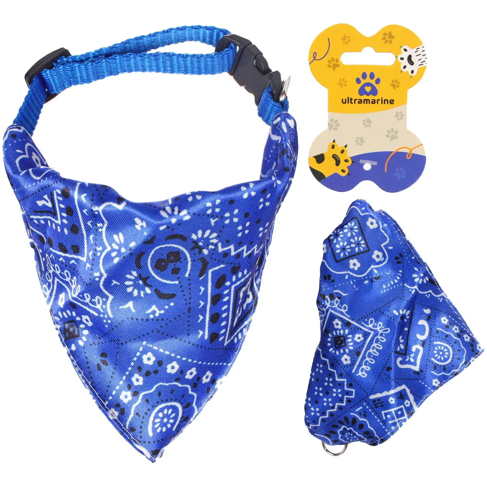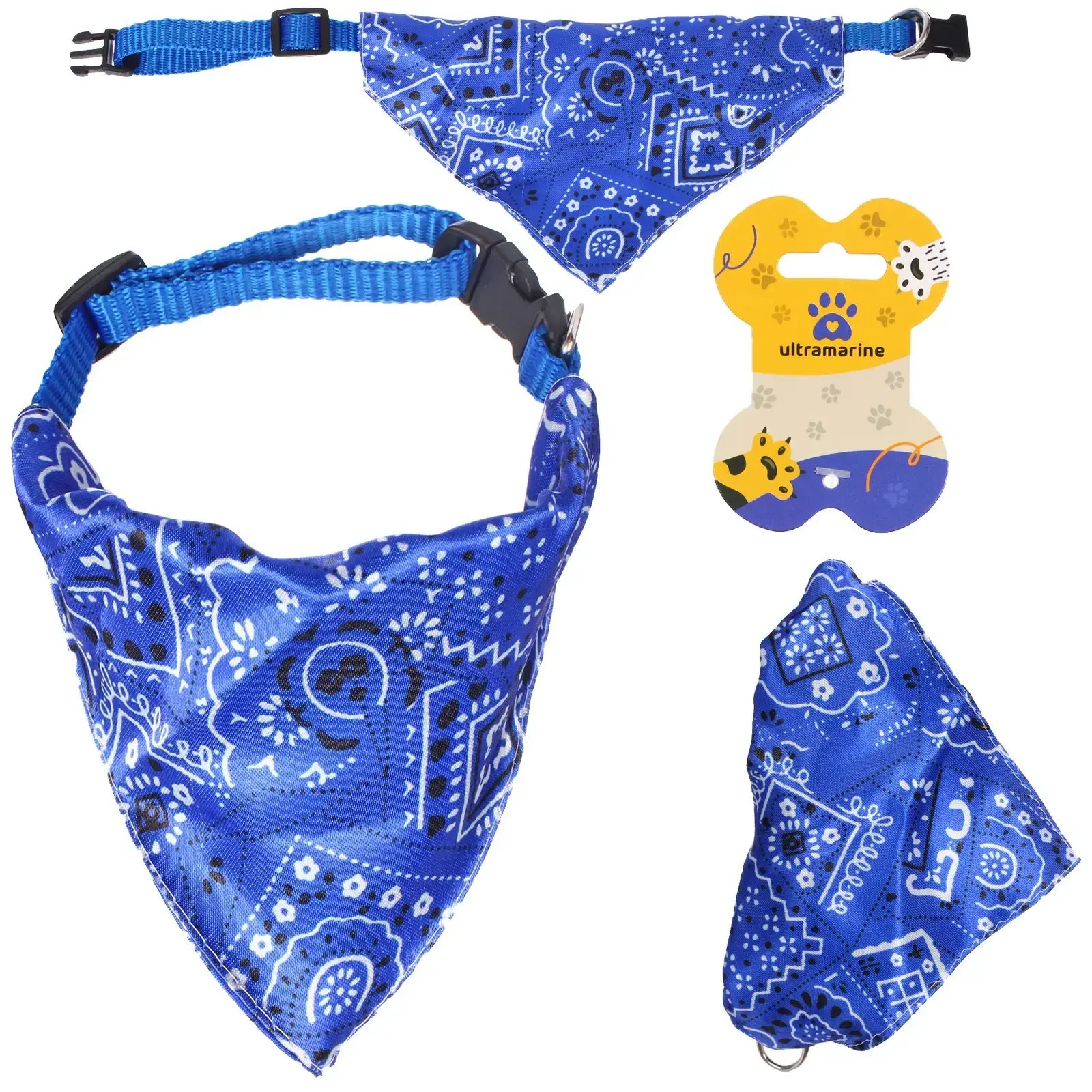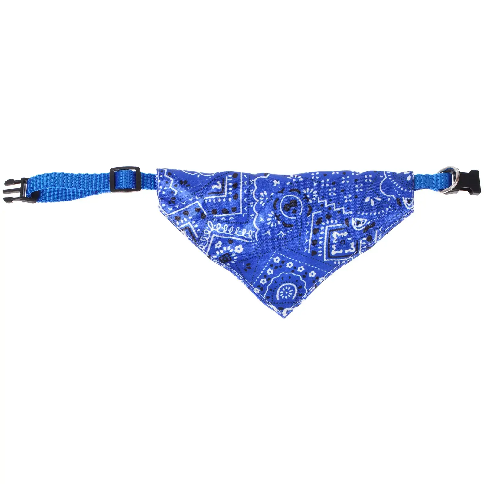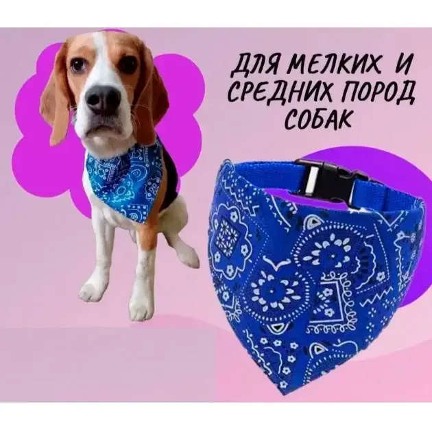 Ошейник с банданой подходит для мелких и средних пород собак. Он легко надевается и снимается благодаря быстрой пластиковой застежке. Бандана, выполненная в ярком синем цвете с белым узором, добавляет стильный акцент и может быть легко снята для стирки. При желании, бандану можно продеть на другой ошейник аналогичной ширины, что делает его универсальным аксессуаром.