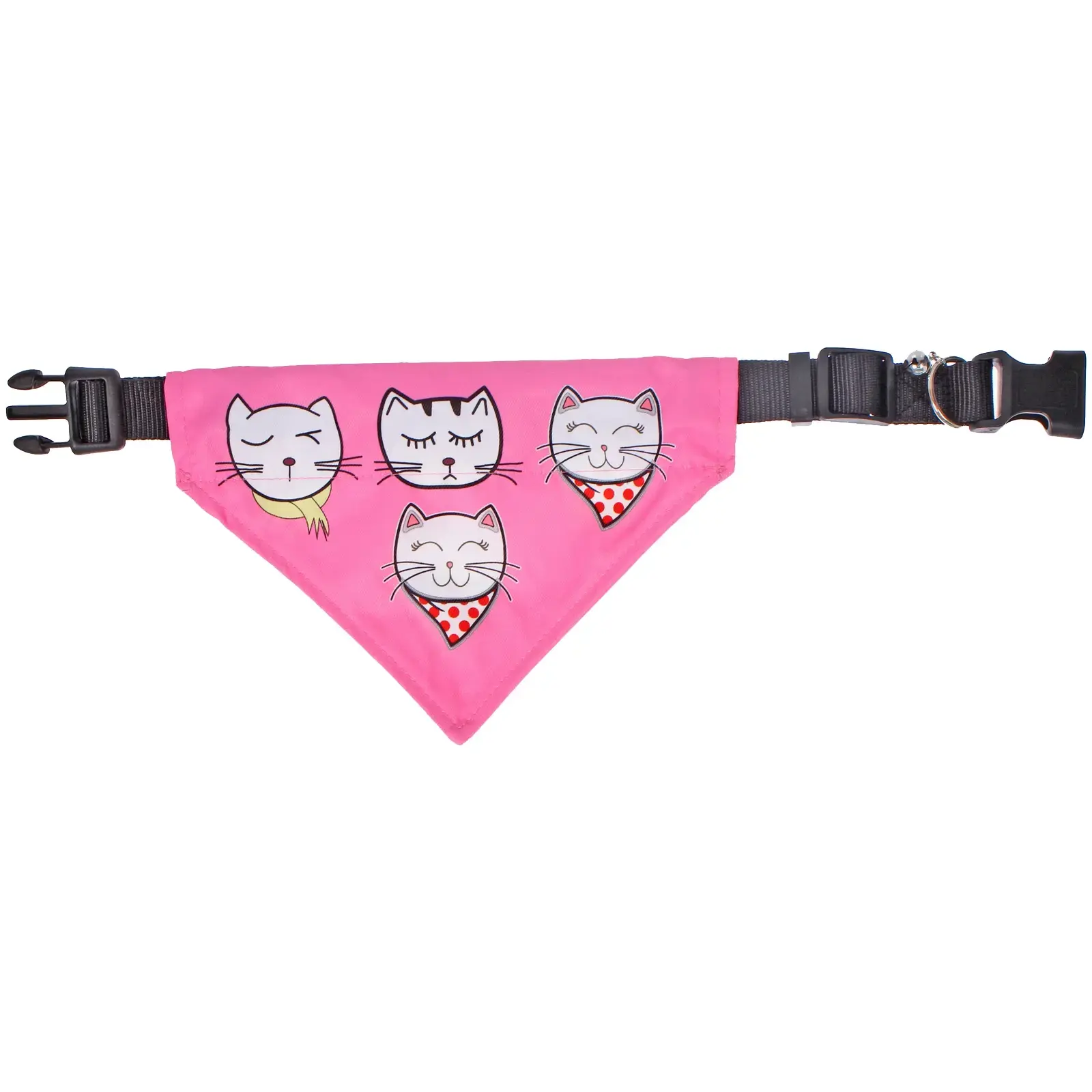 Размеры ошейника составляют рL/23*15,5 см, что подходит для мелких пород. Яркий розовый цвет и мультяшные изображения кошек на бандане делают этот аксессуар привлекательным и веселым. Идеален для фотосессий и прогулок, он станет незаменимым элементом гардероба вашего питомца.