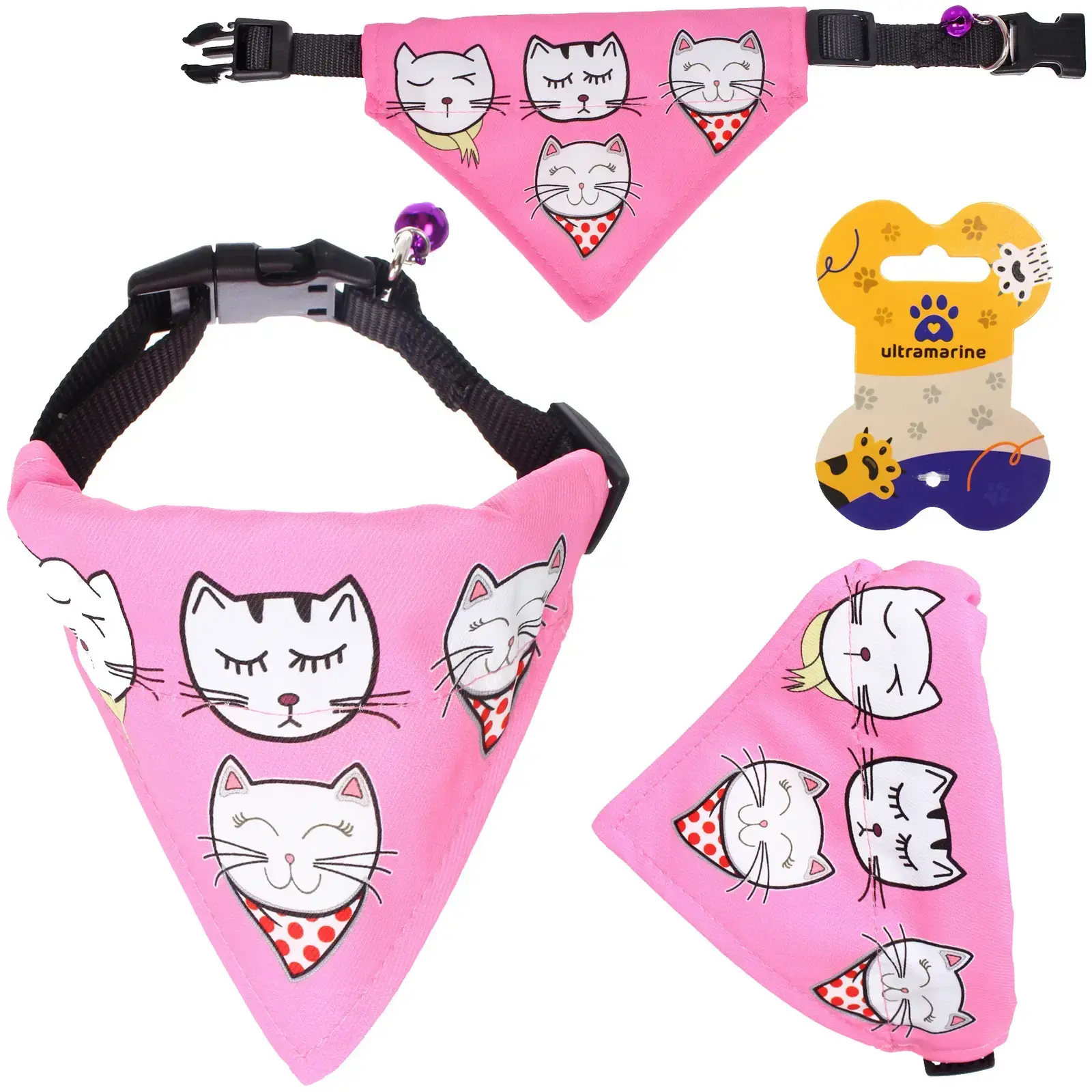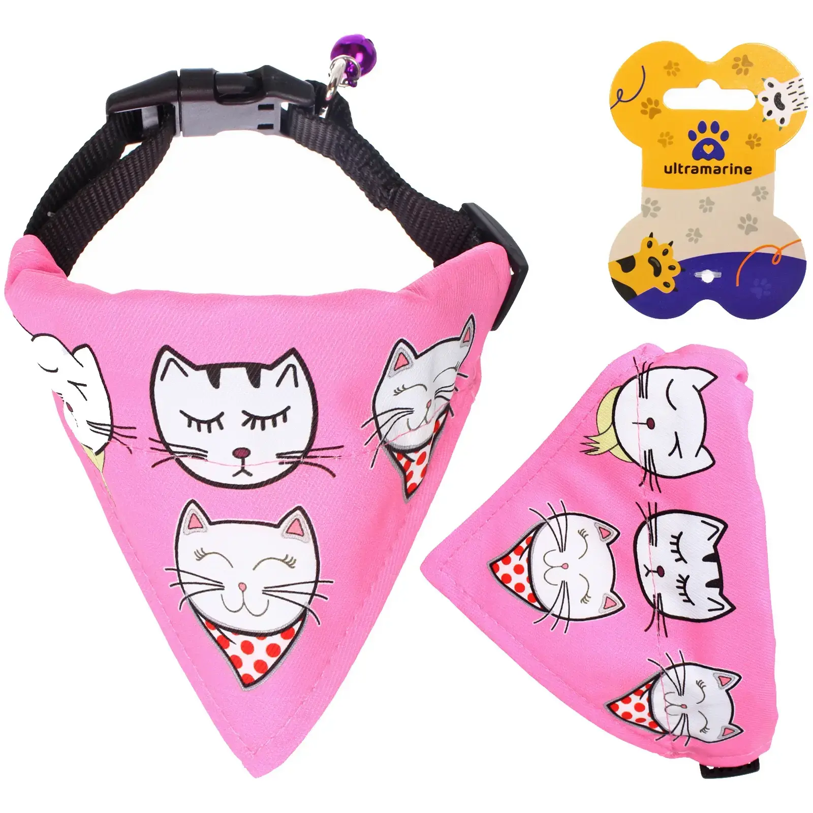 Этот ошейник с банданой не только практичен, но и стильный. Яркий розовый цвет и забавные рисунки кошек делают его отличным выбором для фотосессий. Бандана не токсична и не выцветает, что гарантирует долговечность и безопасность для вашего любимца. Кроме того, ее можно стирать в стиральной машине при температуре 30 градусов, что упрощает уход за аксессуаром.
