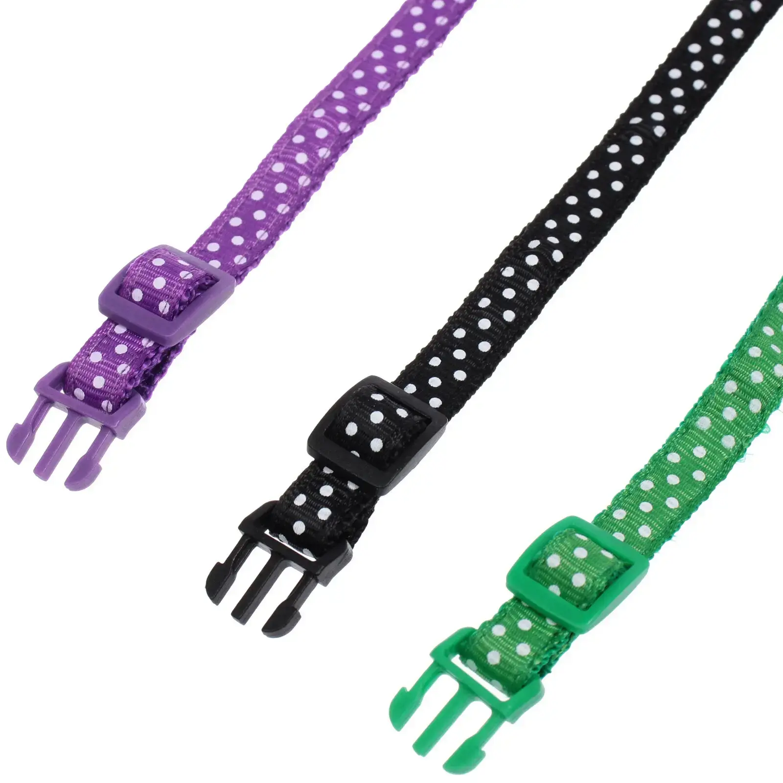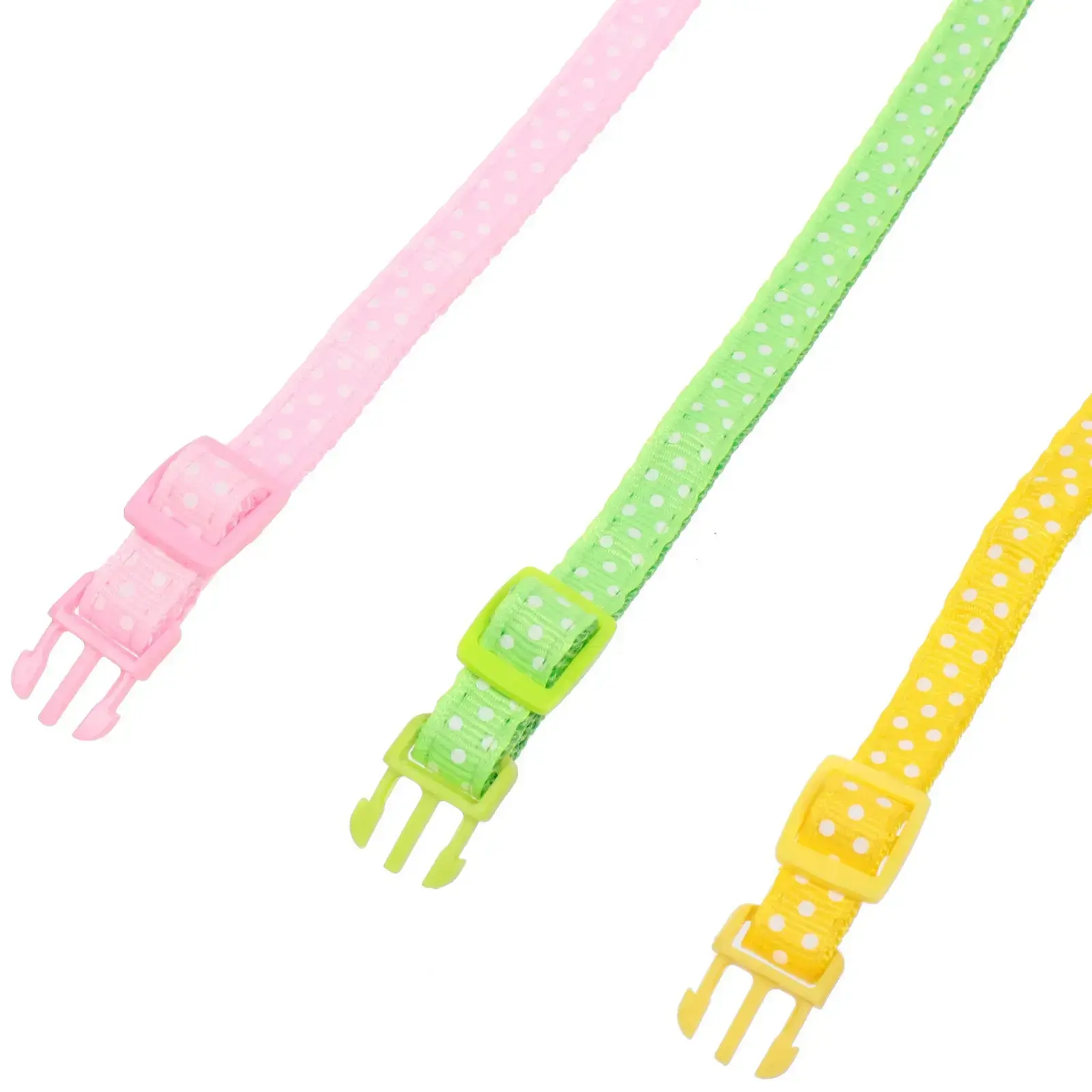 Ошейник выполнен из прочного нейлона, который легко чистится и не теряет цвет со временем. Он представлен в миксе цветов, включая фиолетовый, зеленый, желтый и розовый, что позволяет выбрать наиболее подходящий вариант для вашего питомца. Размеры ошейника составляют 1 см в ширину и регулируются по длине, что делает его идеальным для мелких и средних пород.