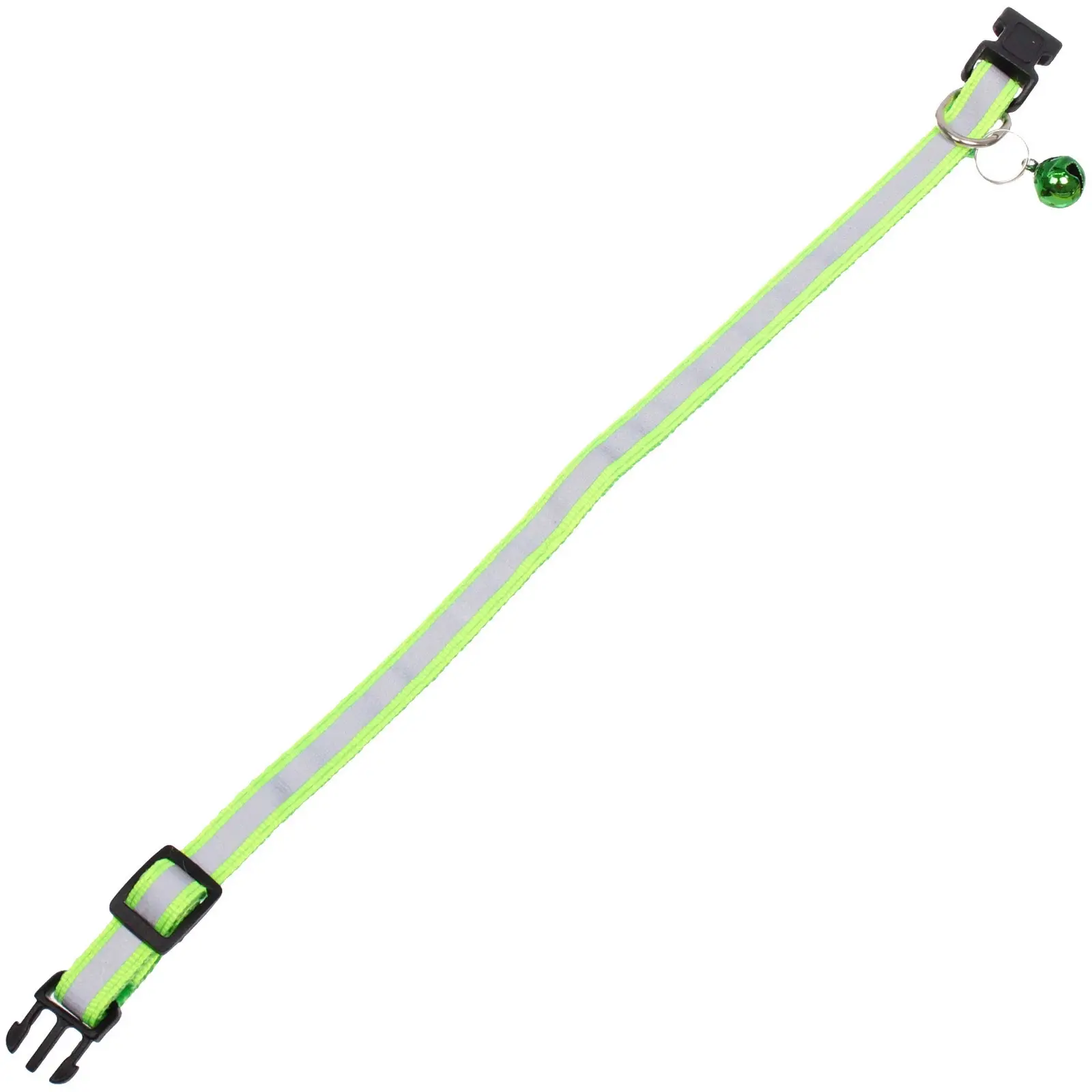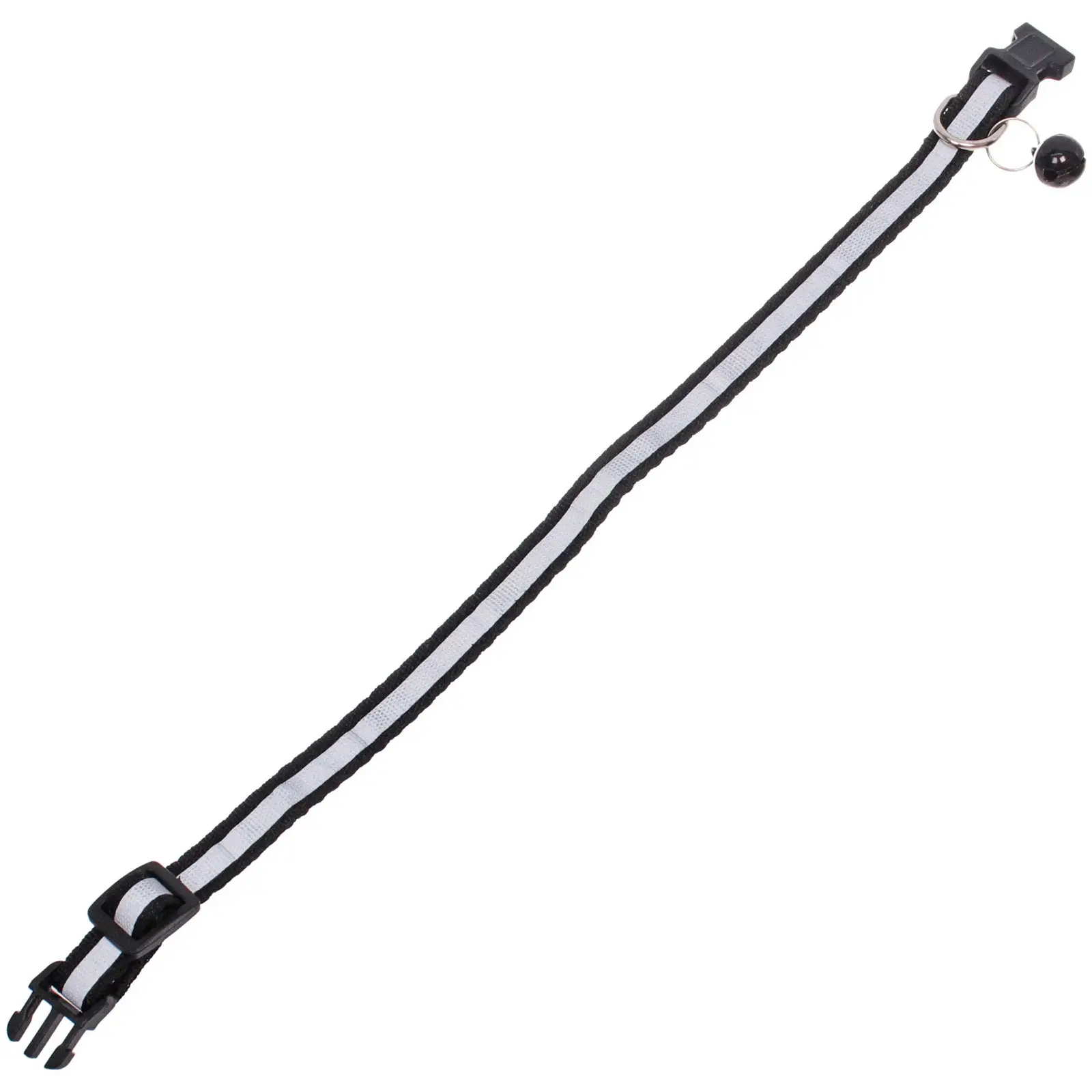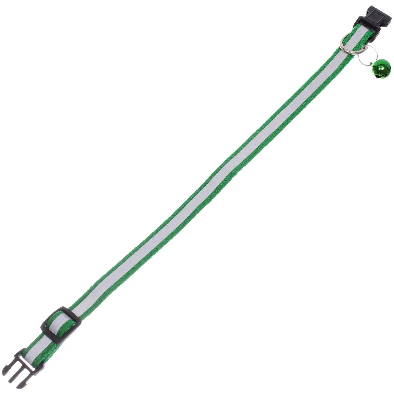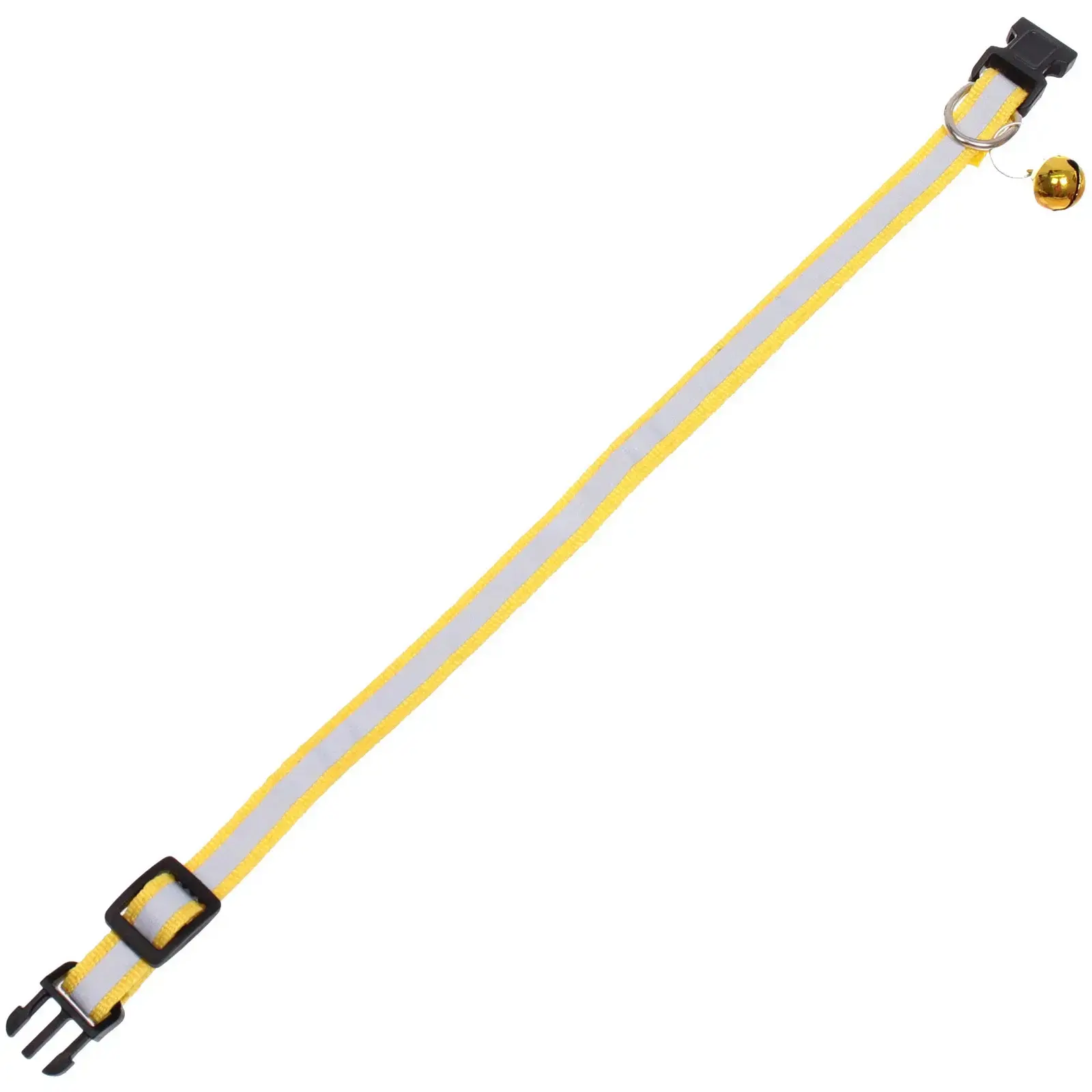 Ошейник имеет регулируемую длину от 19 до 32 см, что позволяет легко подогнать его под размер вашего питомца. Пластиковая застежка обеспечивает надежную фиксацию, а металлическое кольцо позволяет прикрепить поводок или другие аксессуары. Колокольчик, прикрепленный к ошейнику, не только добавляет стильный акцент, но и помогает вам всегда знать, где находится ваш питомец.