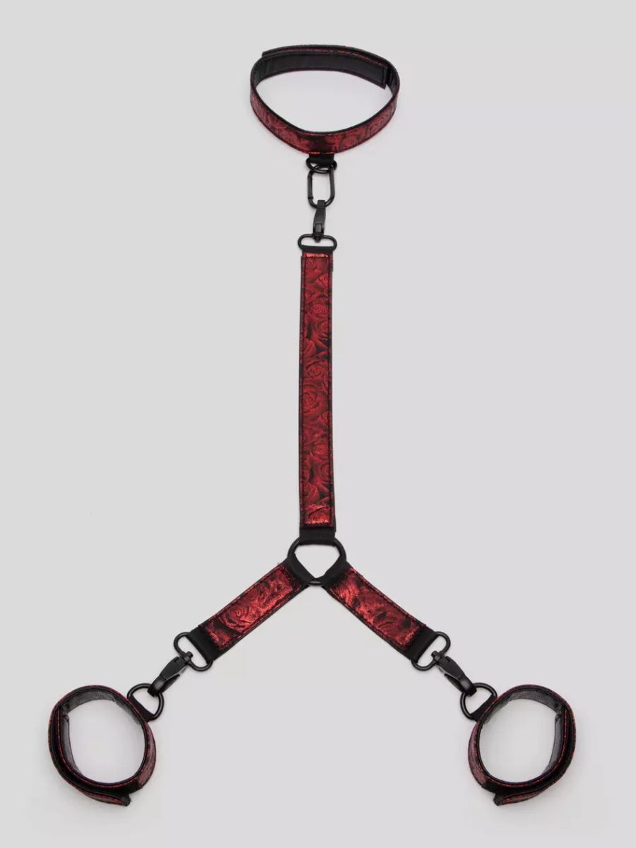 Бондажный комплект «Fifty Shades of Grey»: ошейник и наручники, искусственная кожа, красный с чёрным, регулируемые ремни