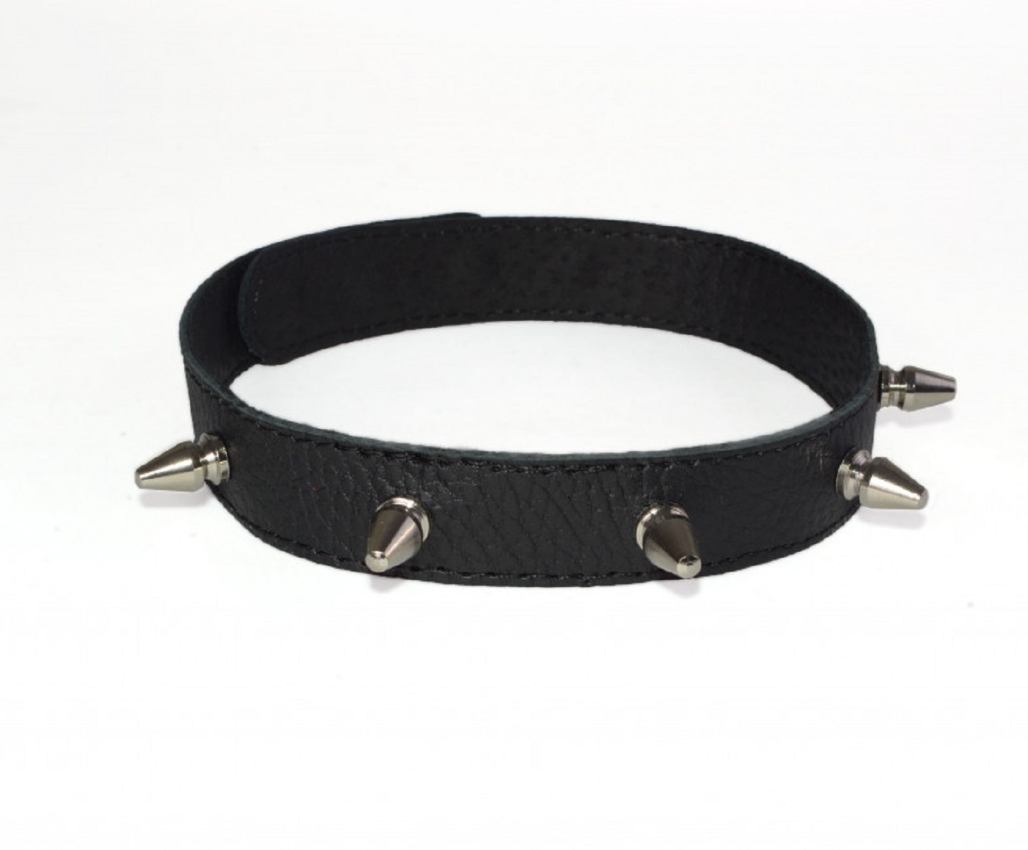 Ошейник подходит как для опытных любителей BDSM, так и для тех, кто только начинает исследовать эту увлекательную сферу. Он станет отличным дополнением к вашему арсеналу аксессуаров, добавляя нотку дерзости и стиля в ваши игры. Шипы, выполненные из никелированной фурнитуры, придают изделию особую привлекательность и подчеркивают его уникальность.
