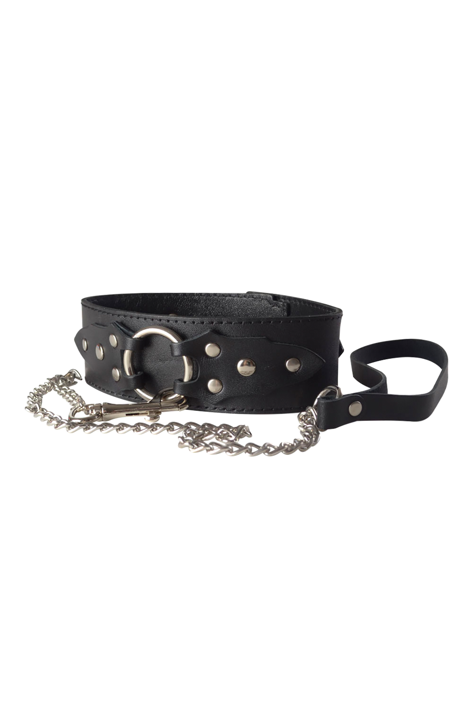 Общая длина ошейника 42 см позволяет отрегулировать посадку под индивидуальные параметры. Поводок-цепь длиной 85 см добавляет свободу движения и контроль в нужный момент. Аксессуар станет выразительной деталью, которая помогает задать настроение и усилить эмоциональное взаимодействие между партнёрами.