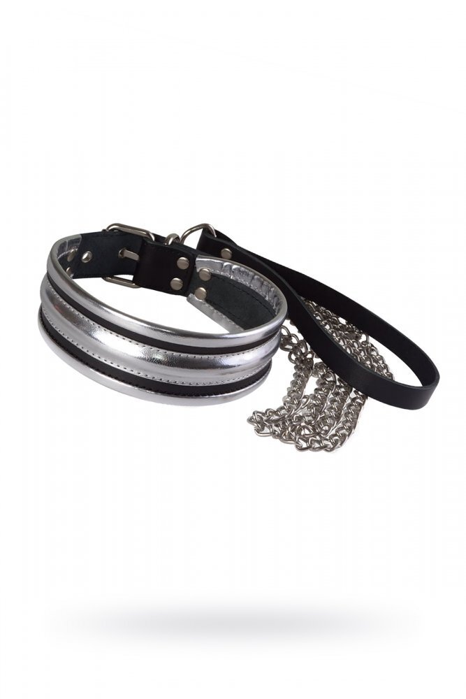 Ошейник Sitabella с поводком, черная кожа/серебристый декор, 42см