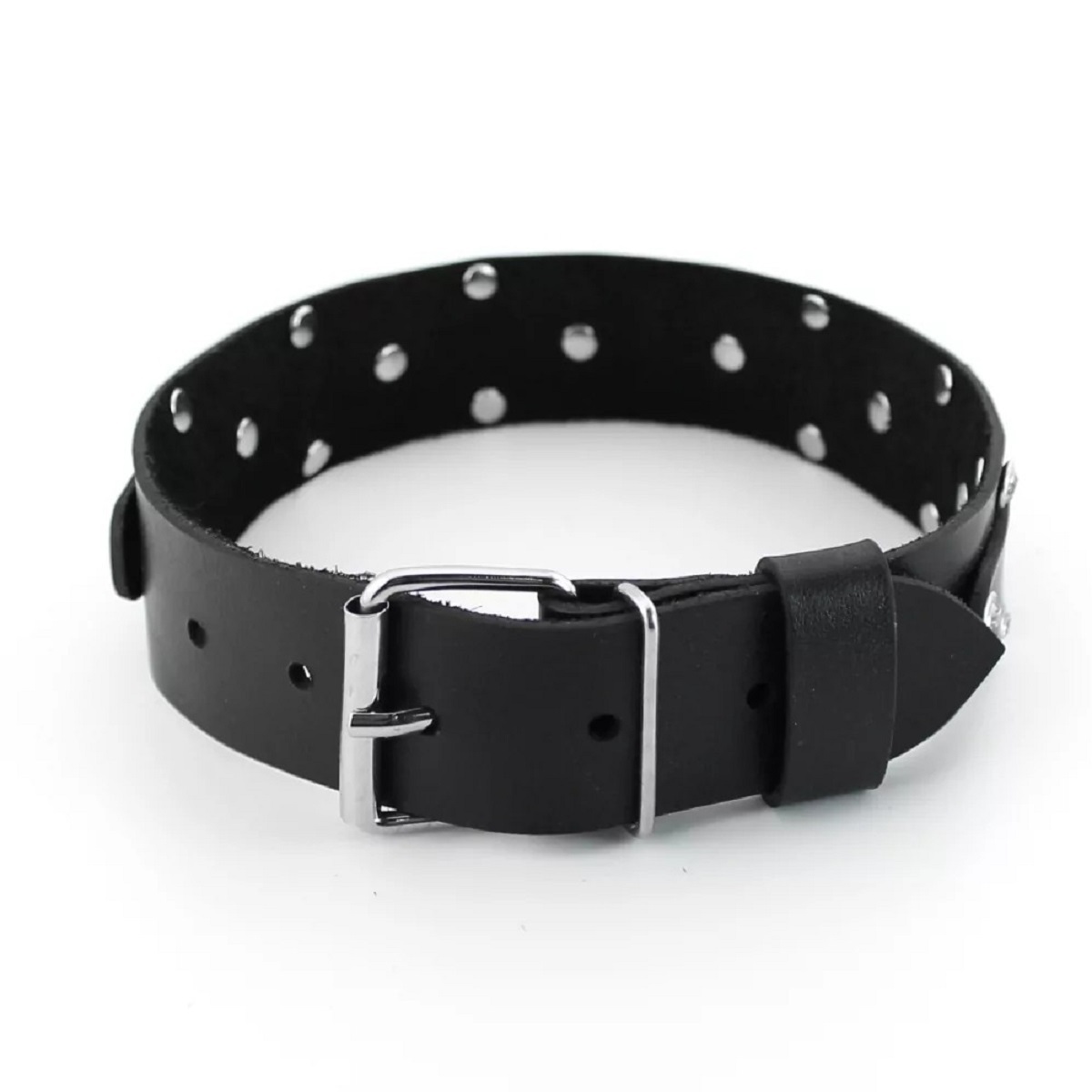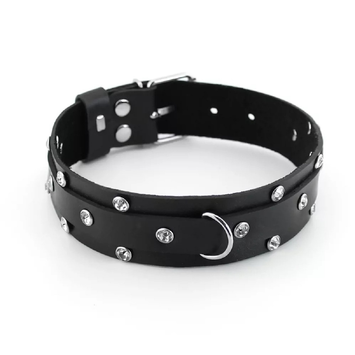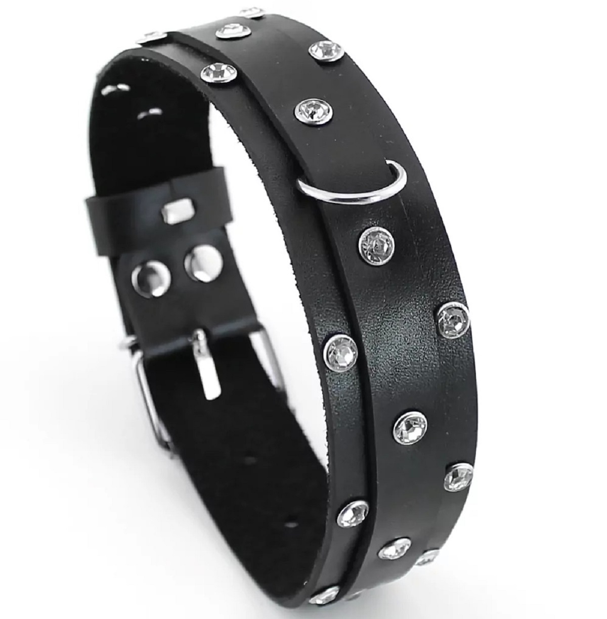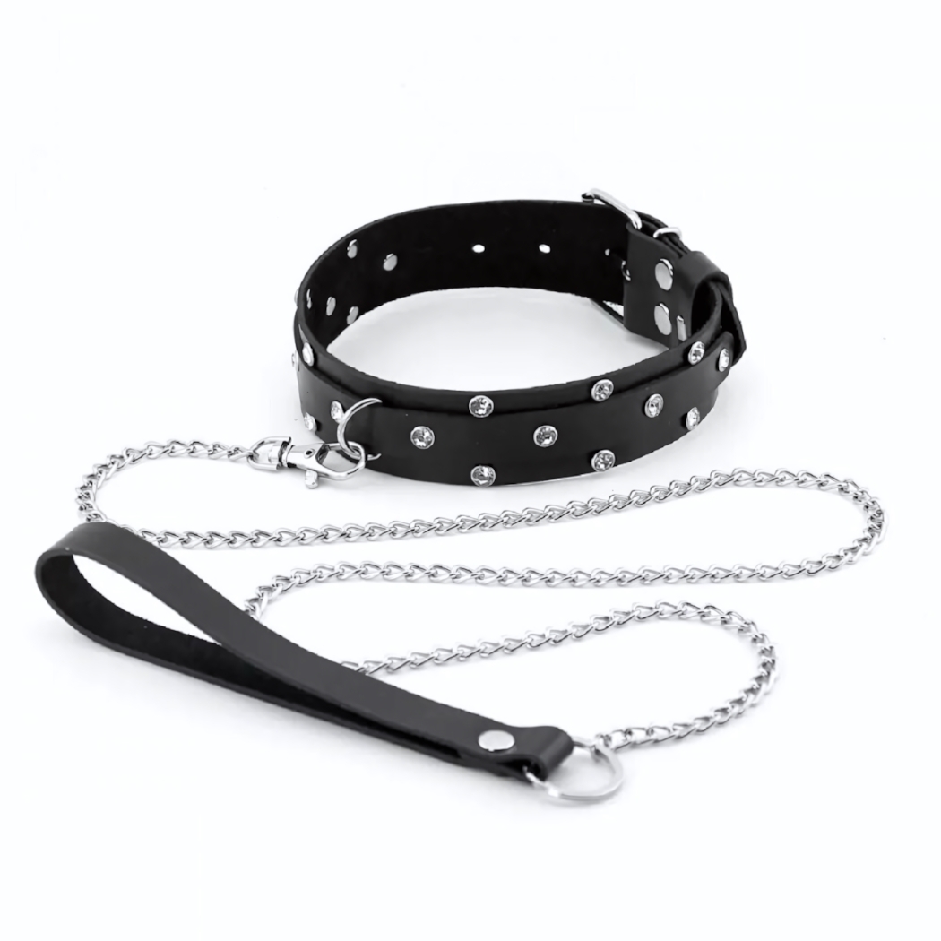 Кожаный ошейник с изысканными стразами и металлической цепочкой — идеальное сочетание эстетики и функциональности. Регулируемая длина от 29 до 38 см обеспечивает комфортную посадку, а съёмный поводок позволяет адаптировать аксессуар под разные сценарии использования.