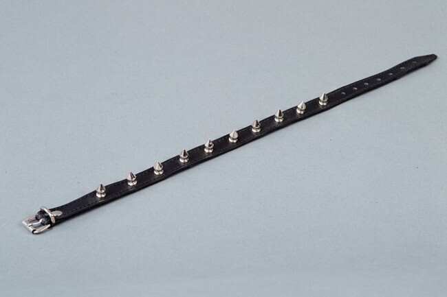 Этот элегантный ошейник из натуральной кожи черного цвета станет идеальным аксессуаром для создания особой атмосферы. Металлические шипы придают ему дерзкий характер и выразительность.