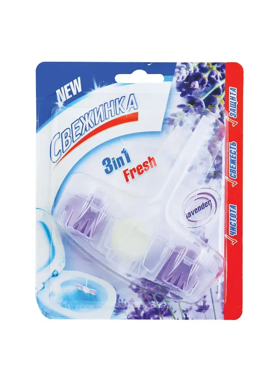 Подарите своему туалету свежесть и чистоту с освежителем для унитаза 'Свежинка 3 in 1'. Этот продукт не только эффективно устраняет неприятные запахи, но и обеспечивает защиту от загрязнений, создавая атмосферу комфорта в вашем доме. Аромат лаванды наполняет пространство нежным и успокаивающим запахом, который будет радовать вас каждый день.