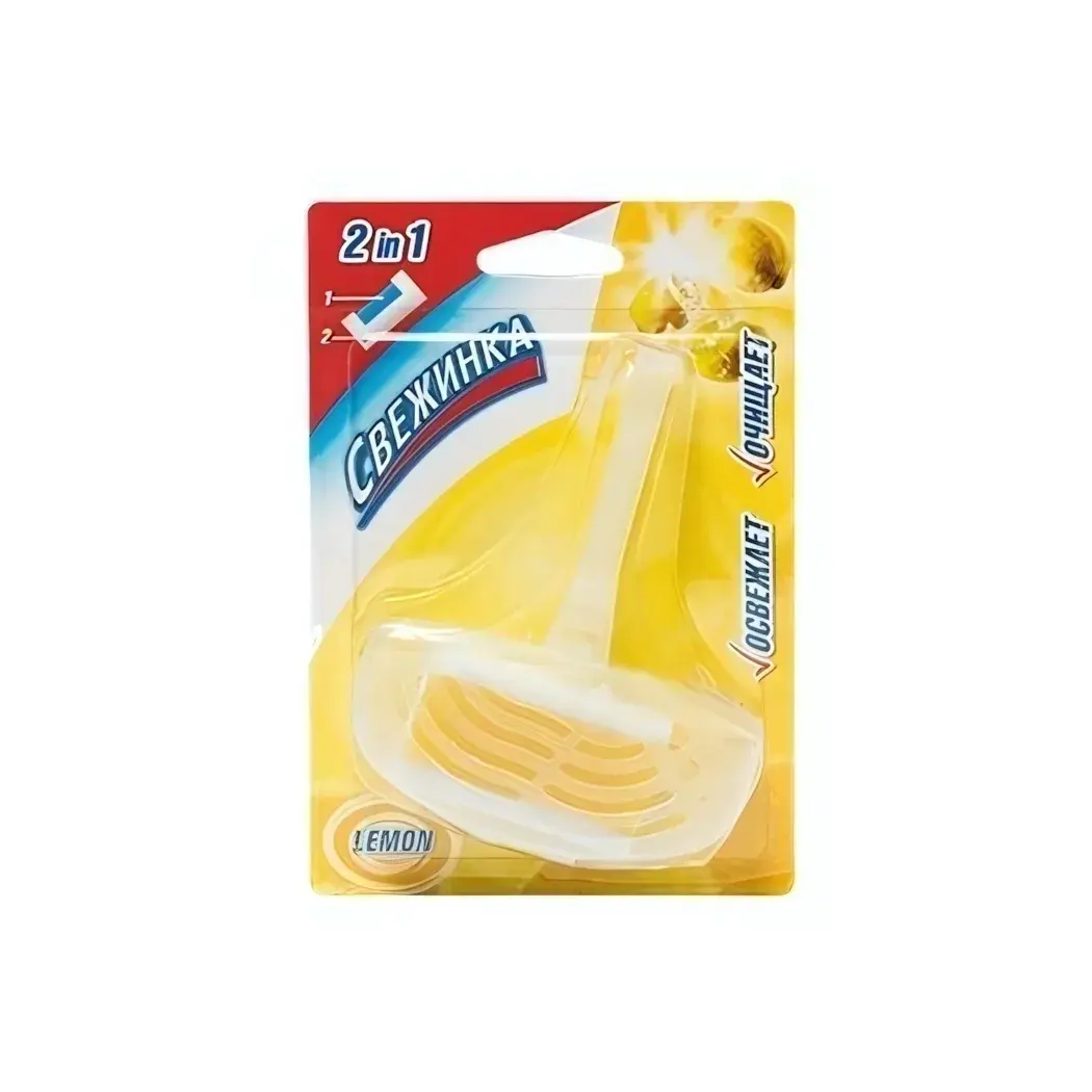 Освежитель для унитаза СВЕЖИНКА с гелевой вставкой — это идеальное решение для поддержания чистоты и свежести в вашем туалете. Благодаря лимонному аромату, он не только очищает, но и освежает воздух, создавая приятную атмосферу. Удобное устройство с хватательной ручкой позволяет легко использовать освежитель, а его герметичная упаковка сохраняет качество продукта до момента использования.