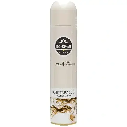 Средство выпускается в светлой упаковке с логотипом "DO-RE-MI PREMIUM". Аэрозольная форма позволяет равномерно распределить освежитель по помещению. Эффективность проверена многочисленными пользователями.
