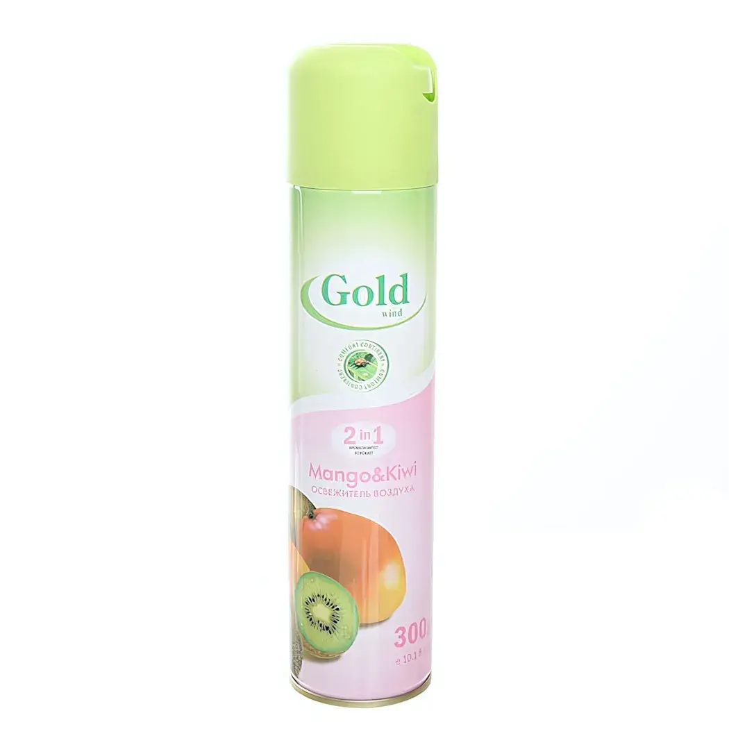 Объем баллончика составляет 300 мл, что обеспечивает длительное использование. Упаковка выполнена в стильном дизайне с яркими изображениями манго и киви, что делает его не только функциональным, но и привлекательным элементом интерьера. Освежитель воздуха ГОЛД ВИНД 2в1 — это ваш выбор для создания комфортной и приятной атмосферы в любом пространстве.