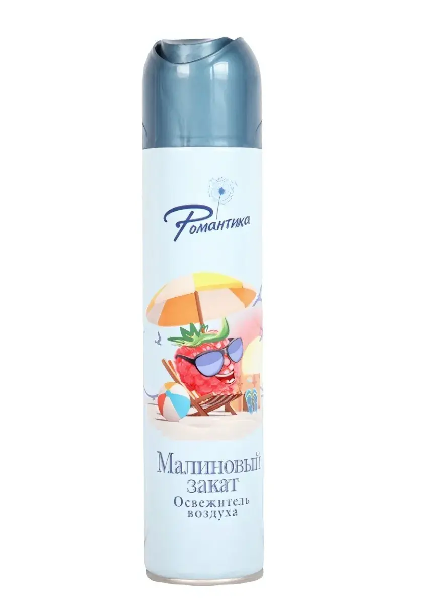 Выбирая освежитель воздуха 'Романтика', вы получаете не только качественный продукт, но и стильный элемент декора. Цилиндрическая форма флакона и его привлекательный дизайн с изображением улыбающейся малины в солнцезащитных очках добавят ярких красок в ваш интерьер. Кроме того, объем 300 мл обеспечивает длительное использование, что делает его экономичным выбором.