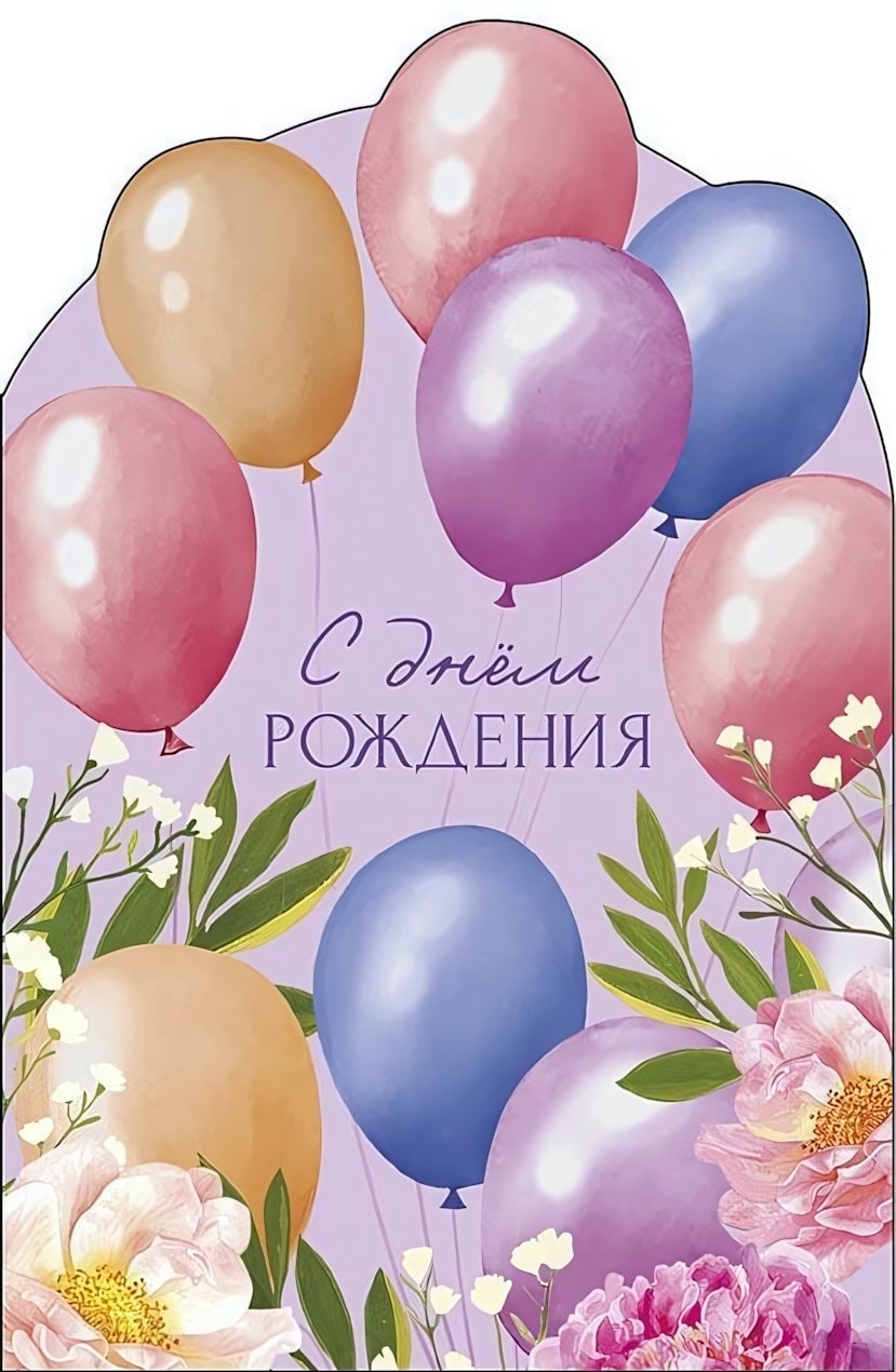 Эта красочная открытка станет прекрасным дополнением к вашему подарку и подарит искренние эмоции имениннику. Яркий дизайн с разноцветными воздушными шарами и нежными пионами создаст праздничное настроение и подчеркнет ваше внимание.