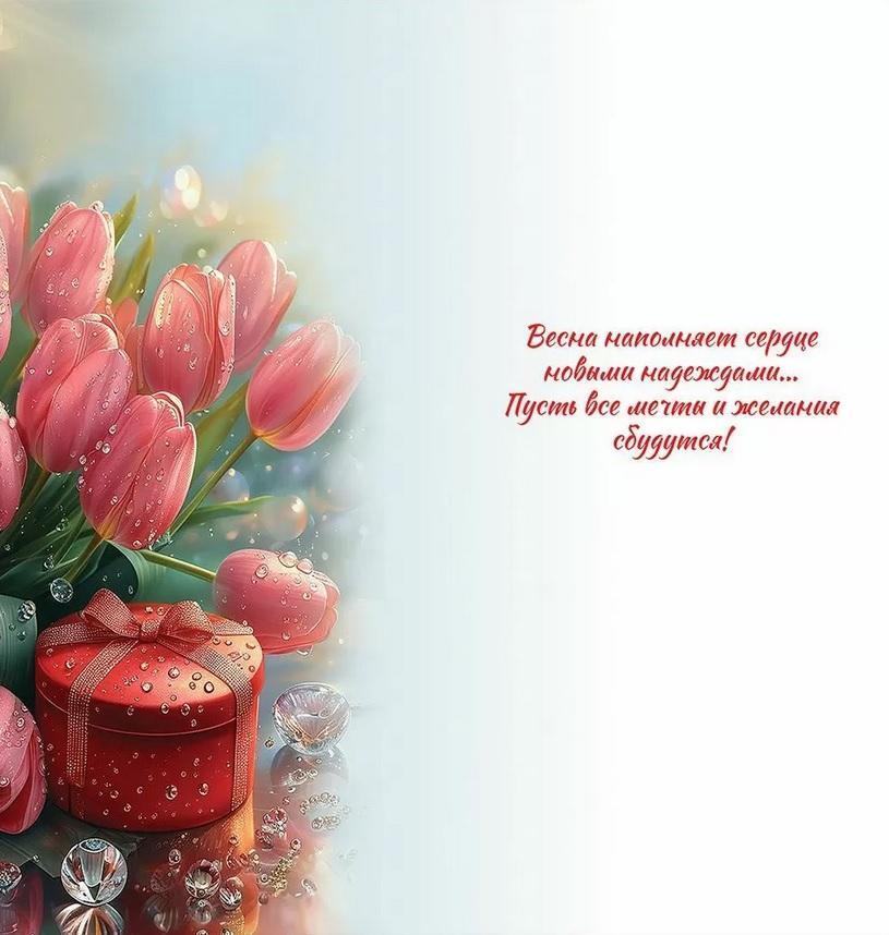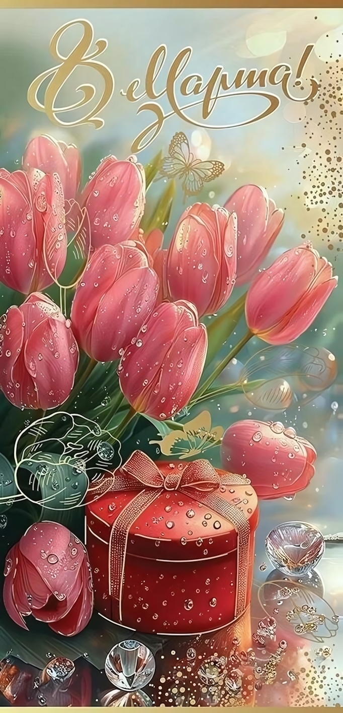 Открытка «8 Марта» с золотой фольгой, формат Евро 97х204 мм, прочный картон, защитное покрытие