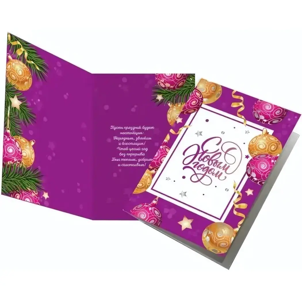 - Текст поздравления уже напечатан внутри открытки, что экономит ваше время