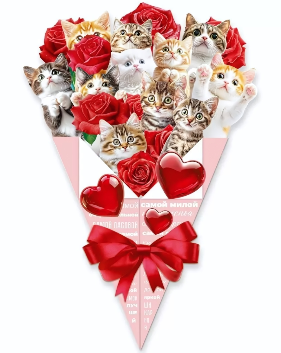 Открытка А4 "Пушистый букетик" – оригинальный подарок с юмором