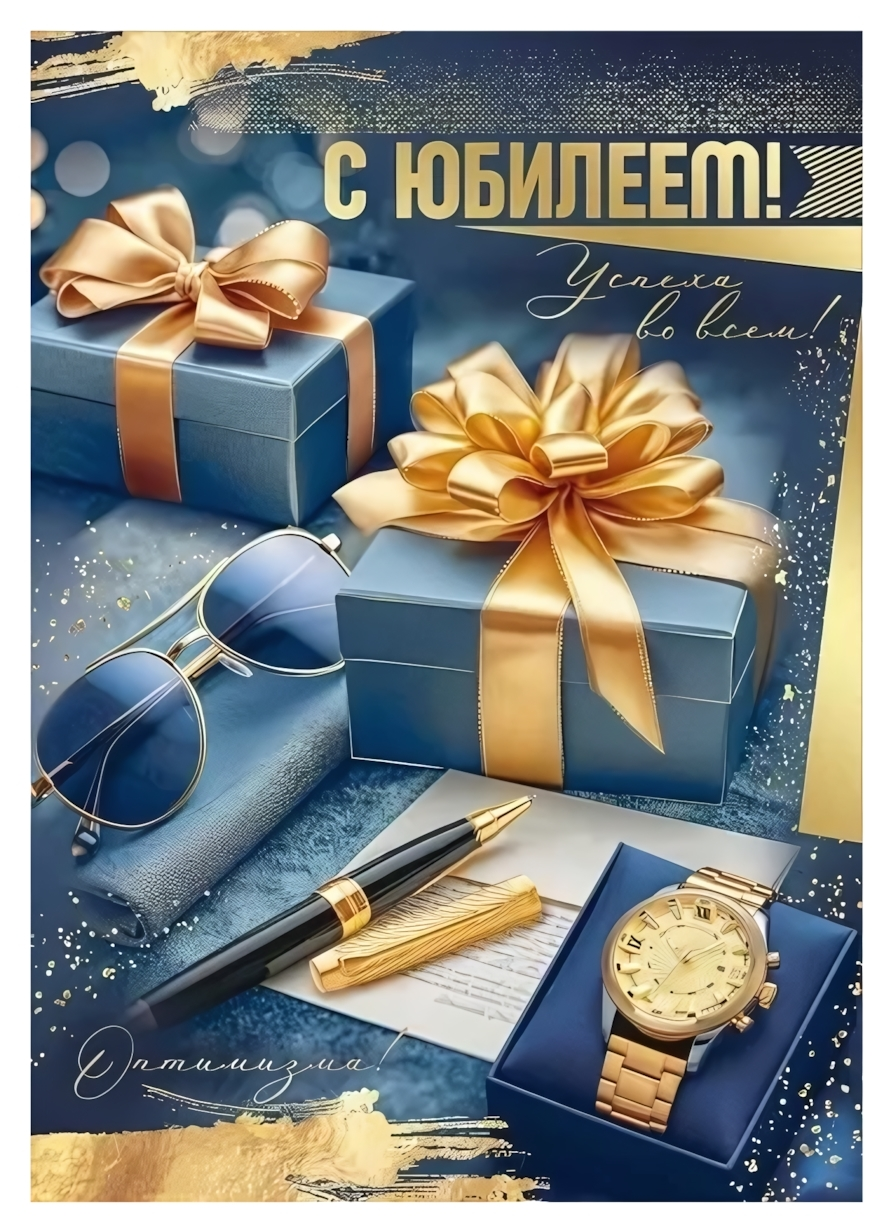 Открытка А4 «С юбилеем!» с золотой фольгой
