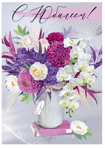 Эта открытка станет прекрасным подарком для ваших близких и друзей в день их юбилея. Она оформлена серебряной фольгой, что придаёт ей элегантный вид и создаёт настроение праздника. С текстом "С Юбилеем!" эта открытка подходит для самых разнообразных торжеств, будь то день рождения, юбилей или любое другое значимое событие.