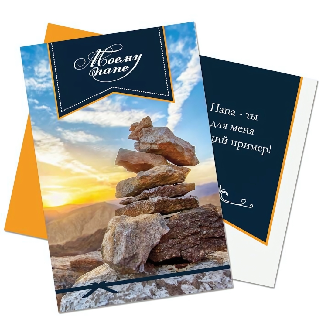 Открытка А5 "Моему папе" с горным пейзажем, замковый камень, бумага 250 г/м²