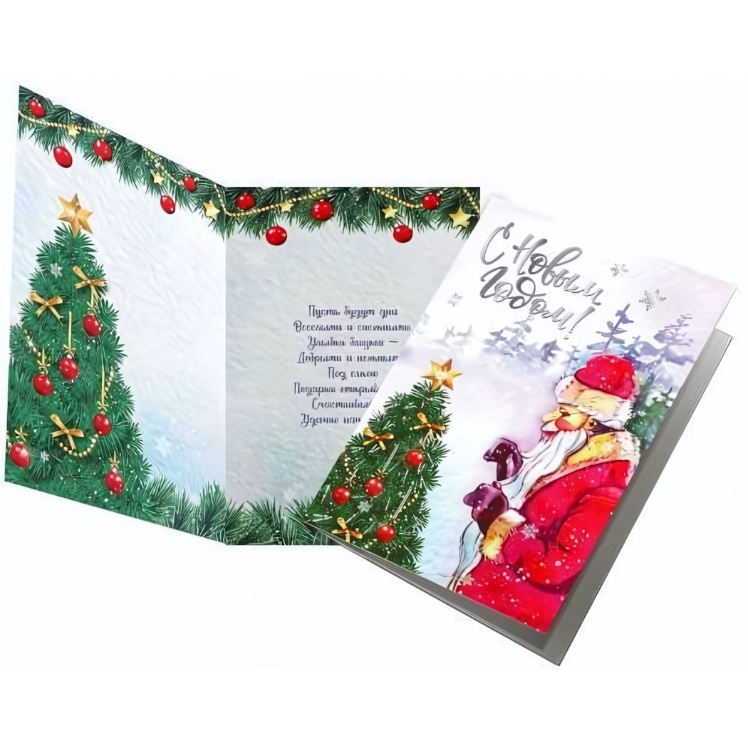 Открытка выполнена из плотной бумаги, внешняя и внутренняя части гармонично сочетаются в едином дизайне. Вручая такую открытку, вы не просто отправляете поздравление, а передаете кусочек новогоднего волшебства, который останется в памяти получателя.