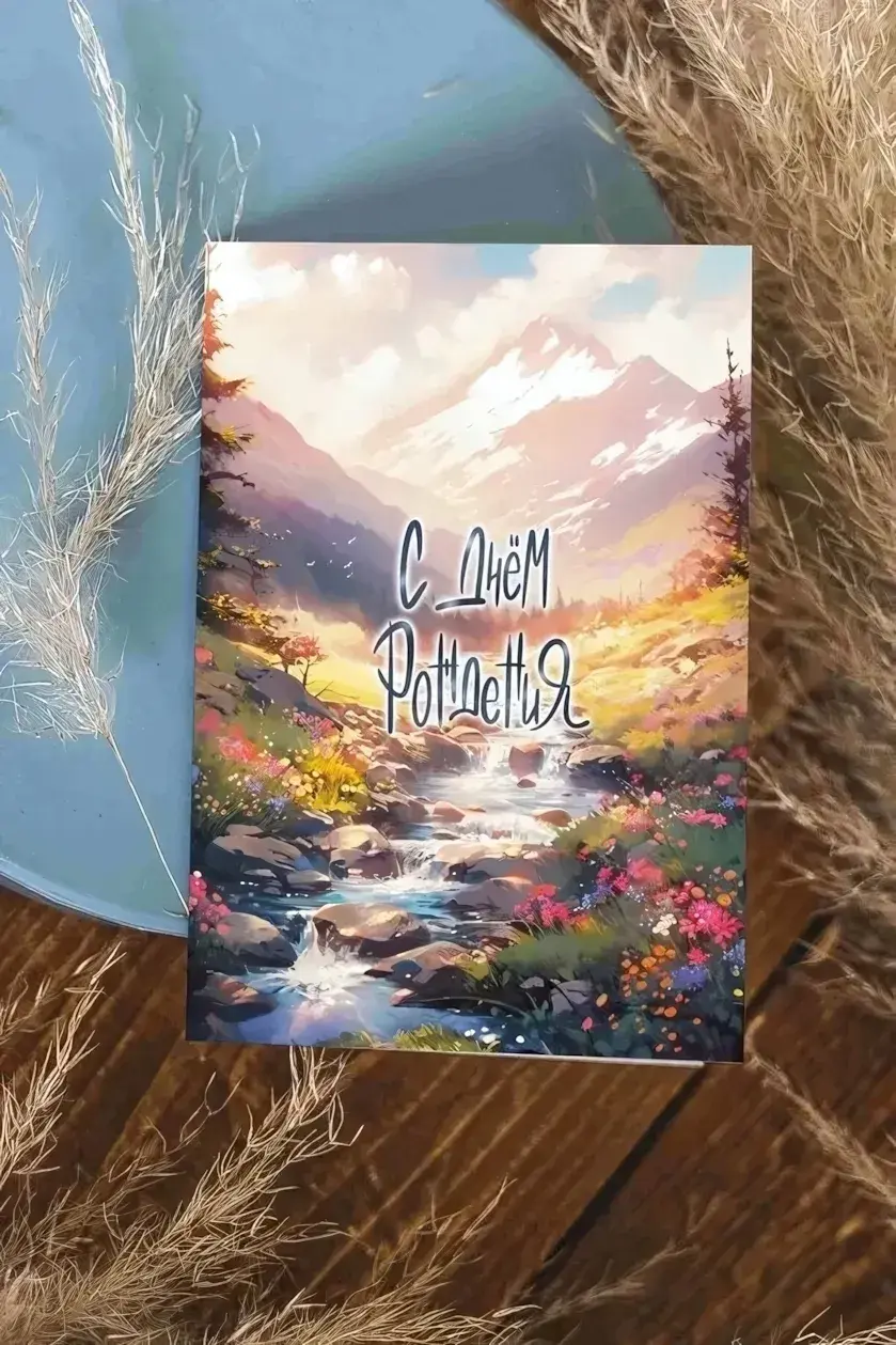 Открытка А6+ «С Днем Рождения (горы)» — это идеальный способ поздравить близкого человека с важным событием. Яркий и красочный дизайн с изображением гор, реки и цветущих лужаек создаст атмосферу радости и тепла. Пастельные тона голубого, зеленого, желтого и розового цветов делают эту открытку особенно привлекательной и запоминающейся.