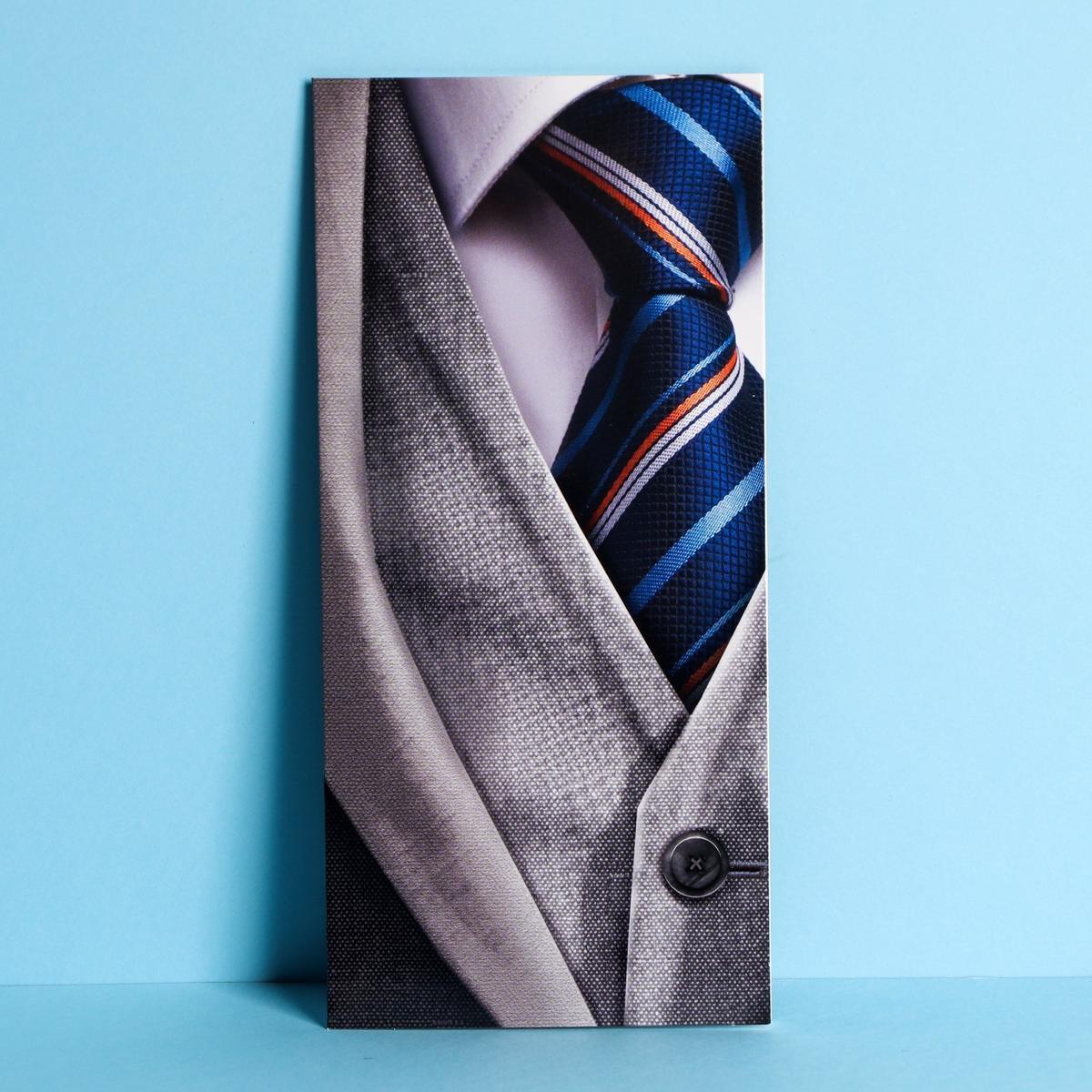 Открытка евро «Мужская»: стильный костюм с галстуком, картон, 10х21 см