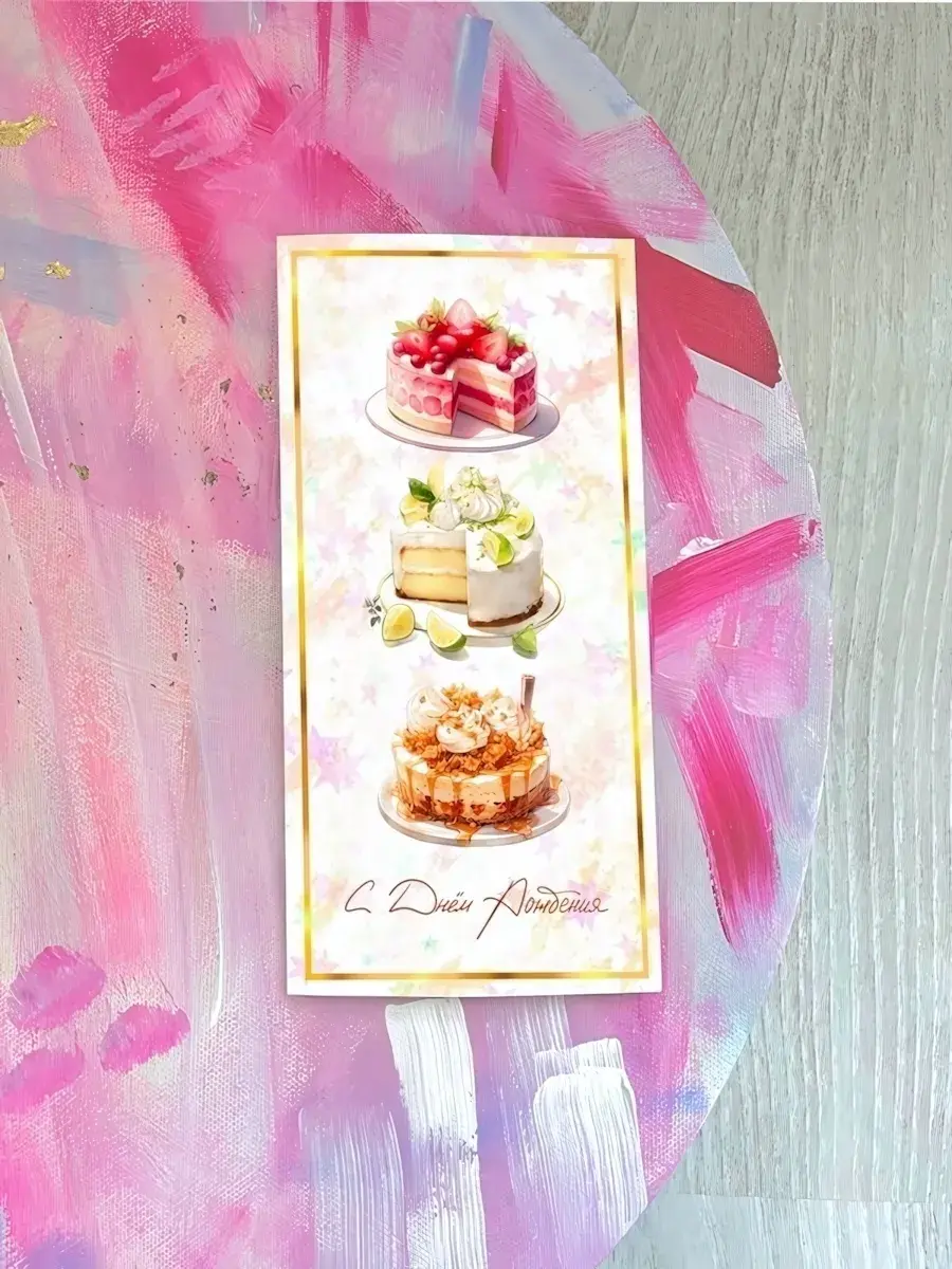 Выбирая открытку 'С Днем Рождения', вы получаете не просто бумажный аксессуар, а возможность выразить свои чувства и пожелания. Яркие и аппетитные изображения тортиков на открытке создают атмосферу праздника и радости. Качественный материал гарантирует, что открытка сохранит свой вид даже после длительного хранения.