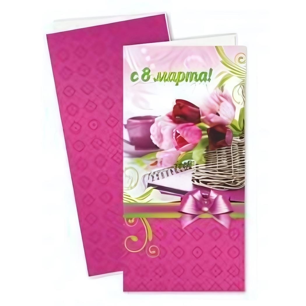 Открытка евро стандарт "С 8 марта!", праздничный дизайн с цветами, Россия
