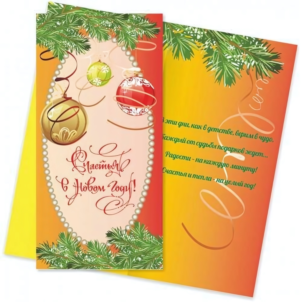 Открытка новогодняя евро стандарт, "Счастье в Новом Году", 148х105мм, коллекция Квадра