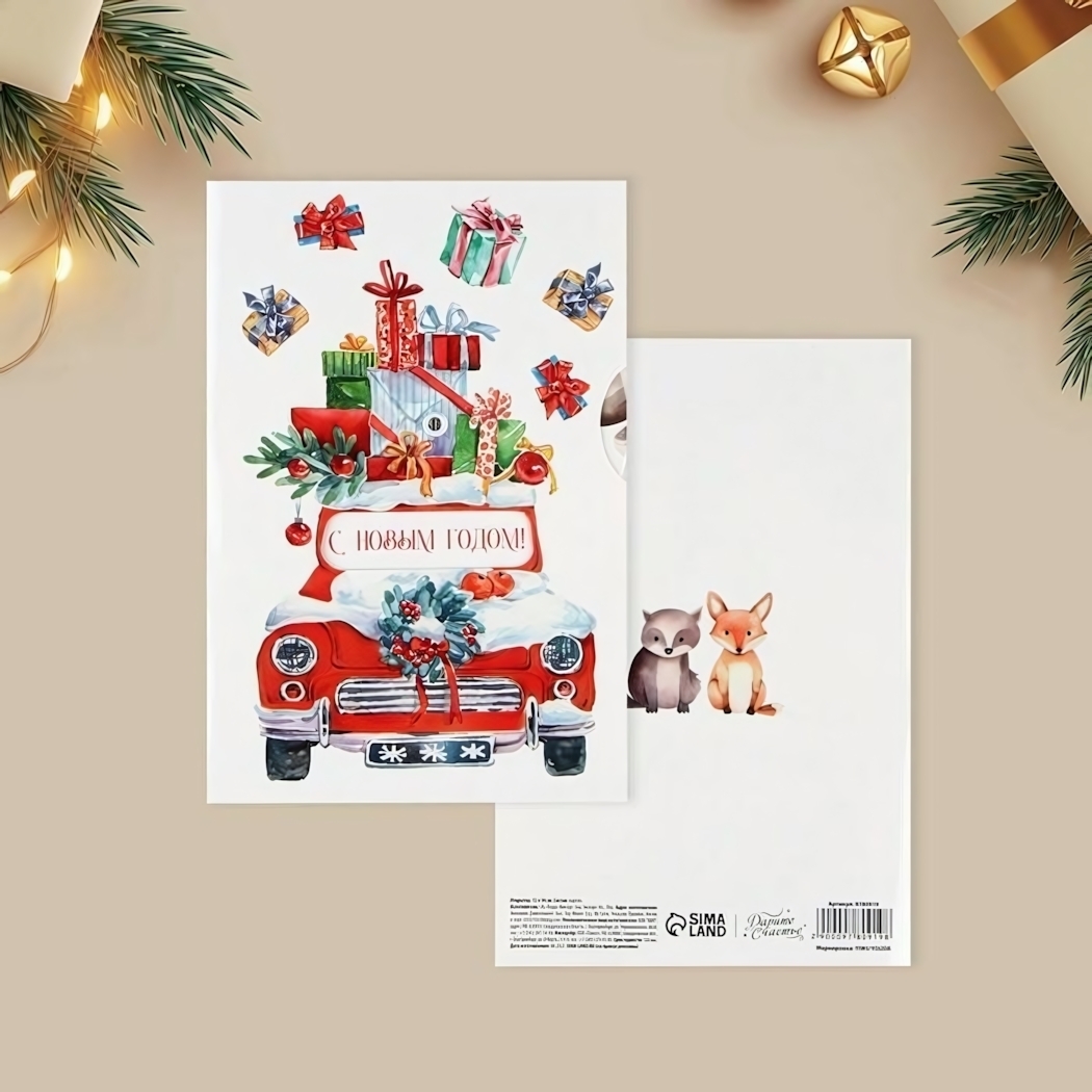 Открытка интерактивная 12×18см "С Новым годом. Машина", праздничный дизайн, яркие цвета