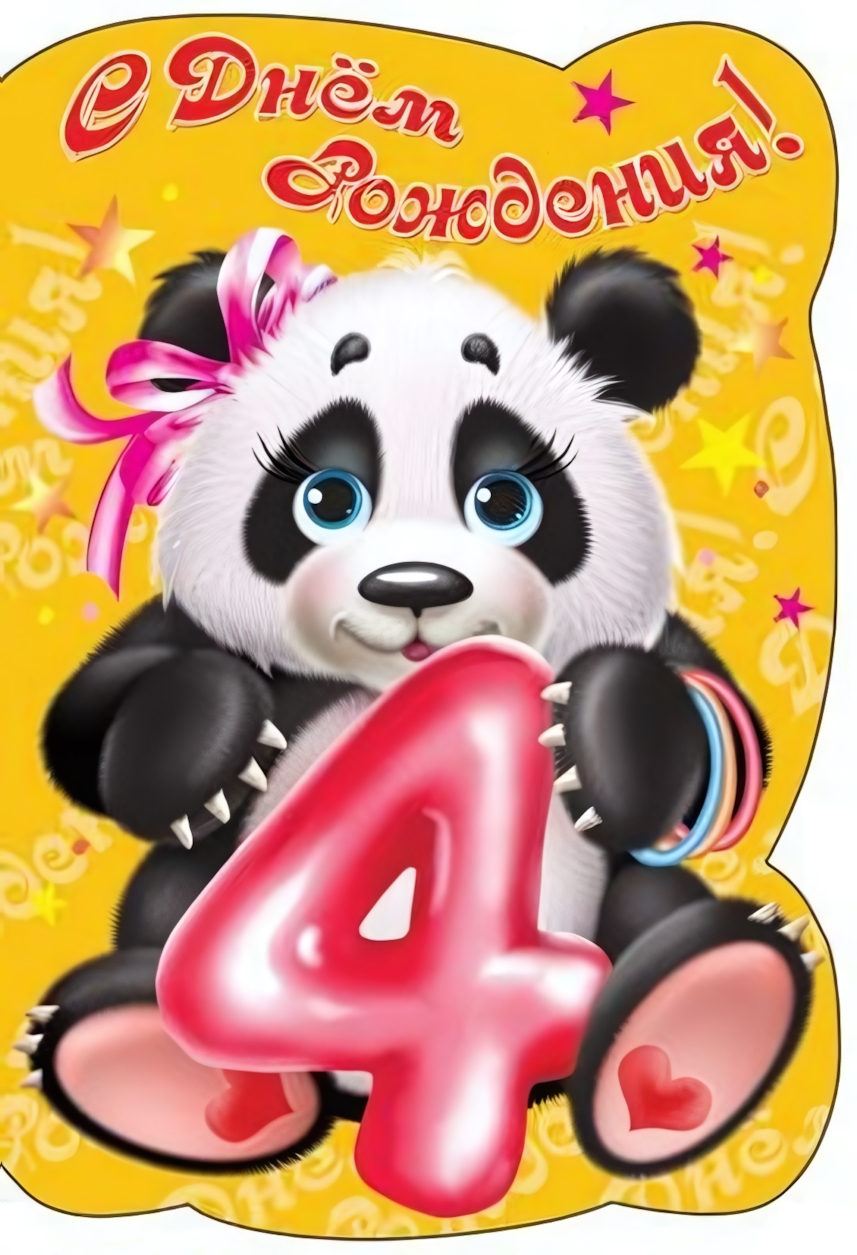Открытка 'С Днем Рождения! 4 годика', 12х18 см, с пандой, яркий дизайн