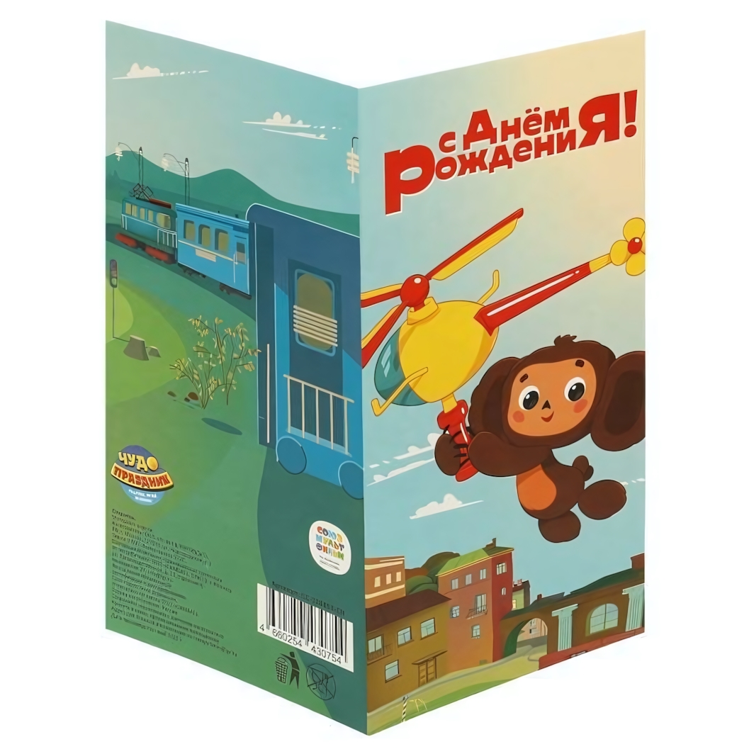 Открытка 'С днём рождения. Чебурашка', 12х18см, картон, яркий дизайн