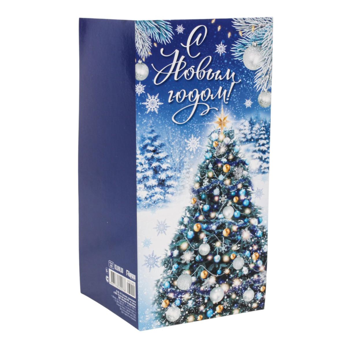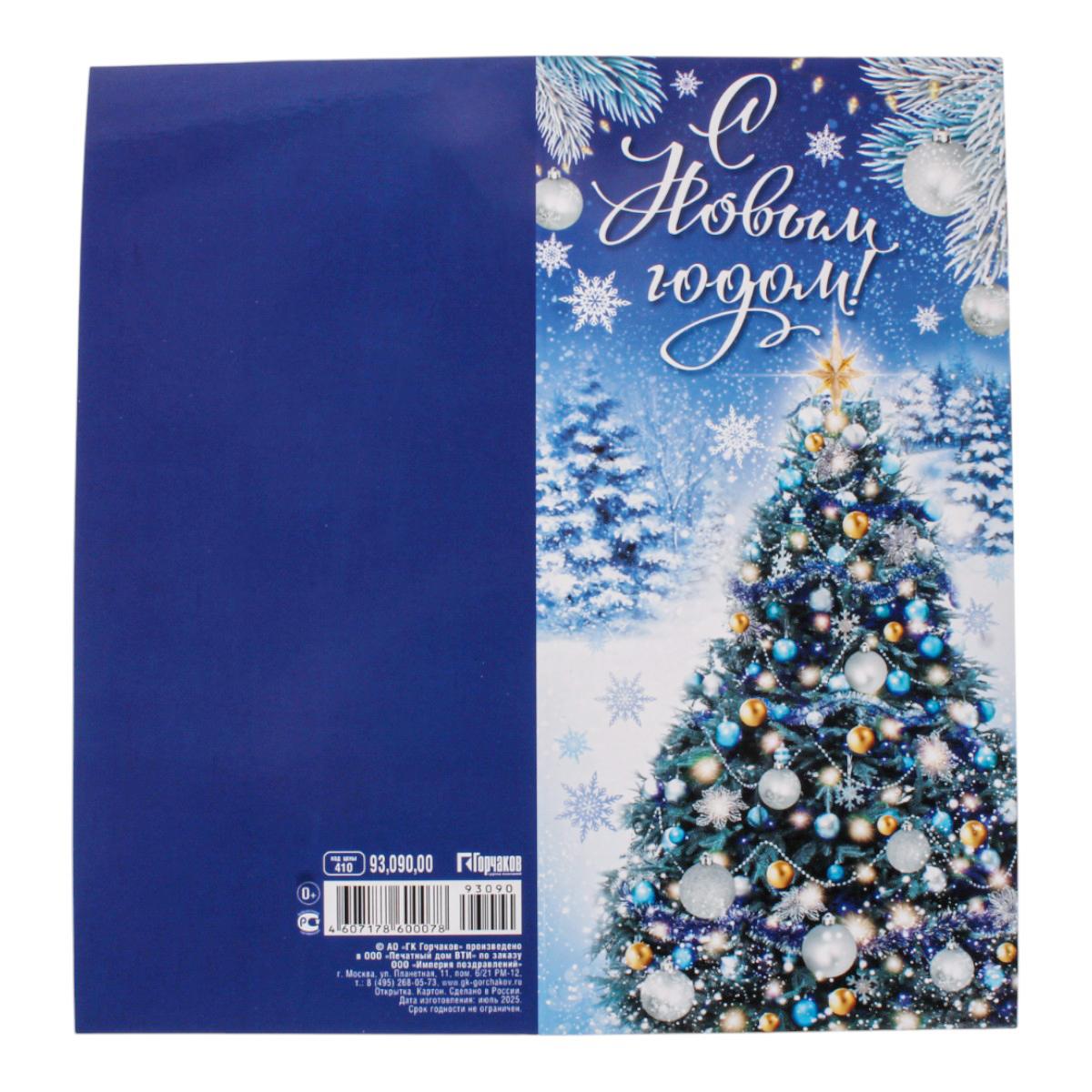 Эта яркая новогодняя открытка станет прекрасным дополнением к вашему подарку или самостоятельным тёплым посланием. Глянцевая поверхность и насыщенные цвета создают праздничное настроение, а классический дизайн с зимним пейзажем и нарядной ёлкой понравится людям любого возраста.