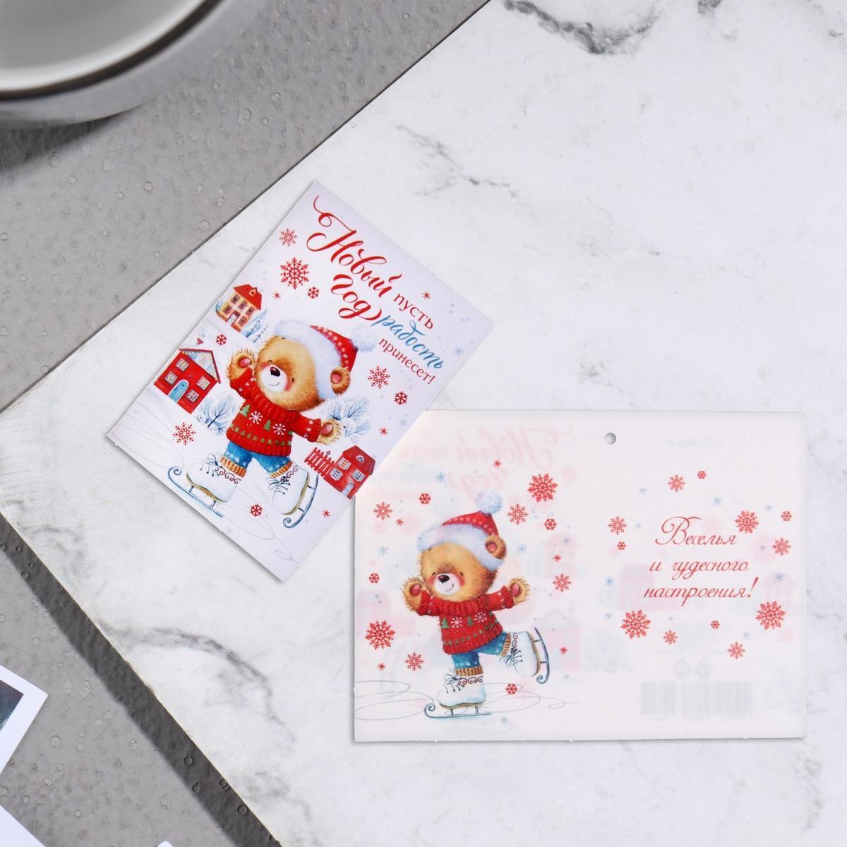 Открытка новогодняя с термографией "Новый год пусть радость принесет!", 5,8х8,5 см, праздничная