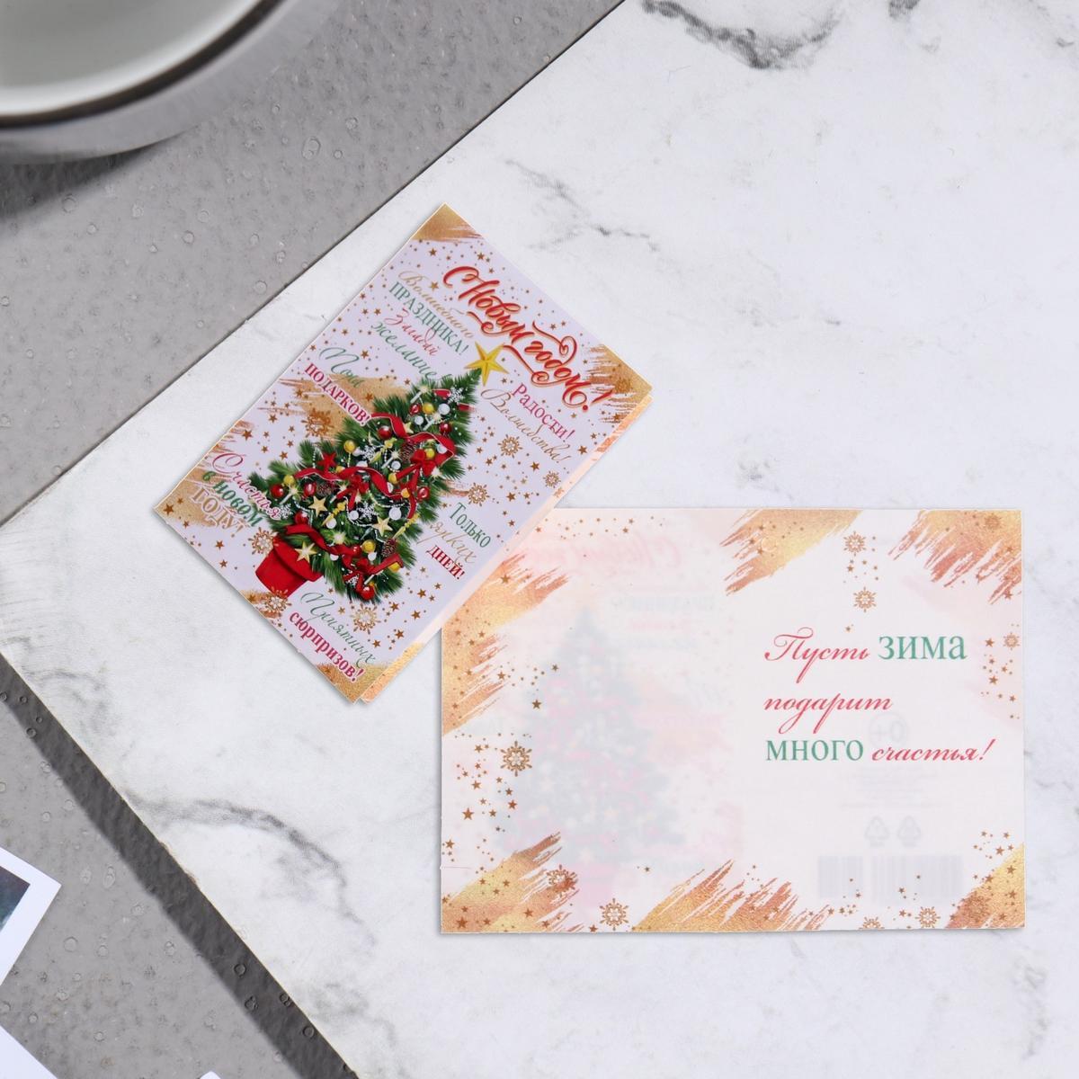 Открытка новогодняя "С Новым годом!", ёлка в горшке, 5,8х8,5 см, термография