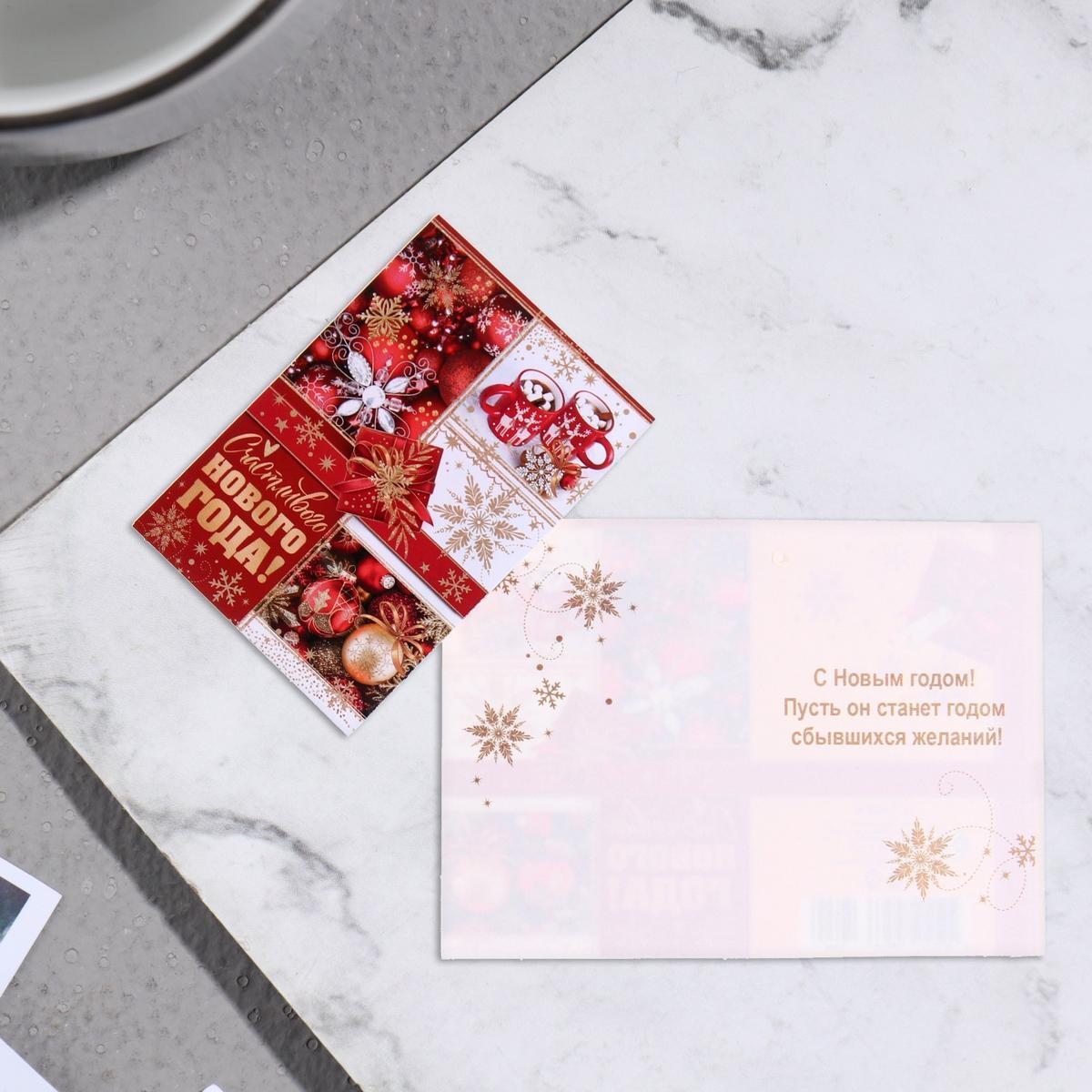Создайте волшебное настроение с открыткой, где каждая деталь продумана до мелочей! Термопечать придаёт тексту объёмную фактуру, а золотое фольгирование сияет праздничным блеском — такой подарок запомнится надолго.