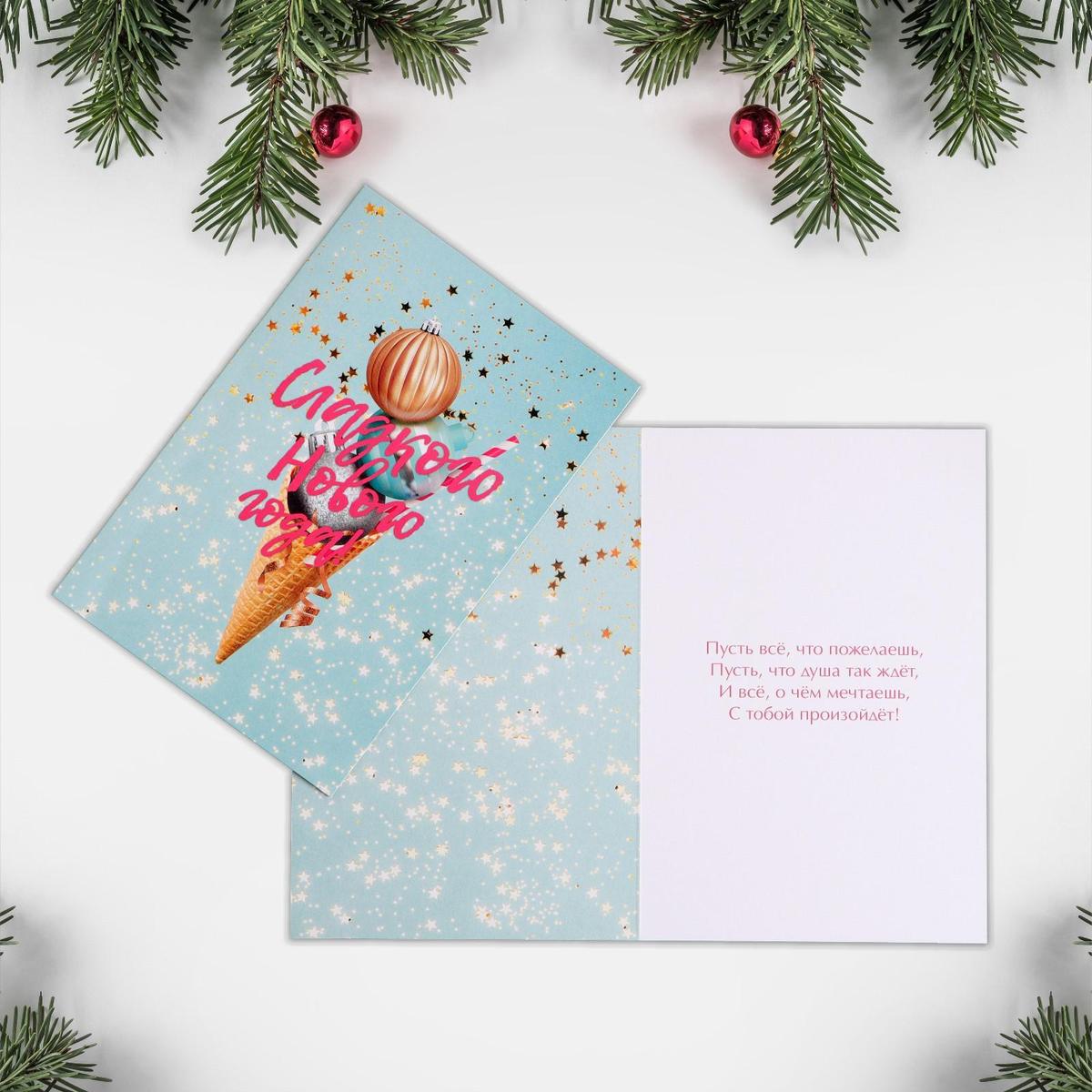Открытка новогодняя "Сладкого Нового года", мороженое, 12×18 см, с блестками